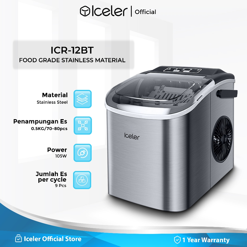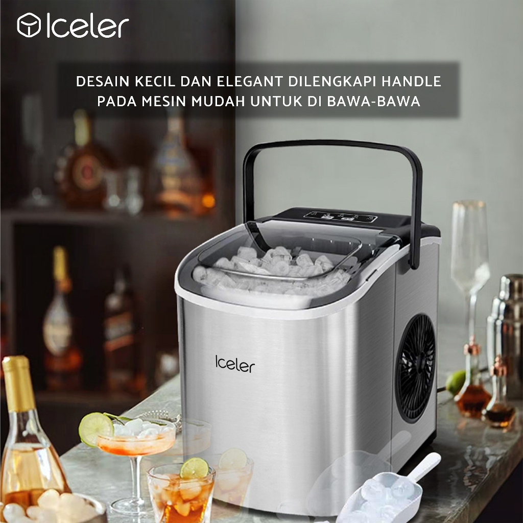 Iceler Mesin Es Portable Ice Maker 12 Kg per Hari dengan 2 Handle