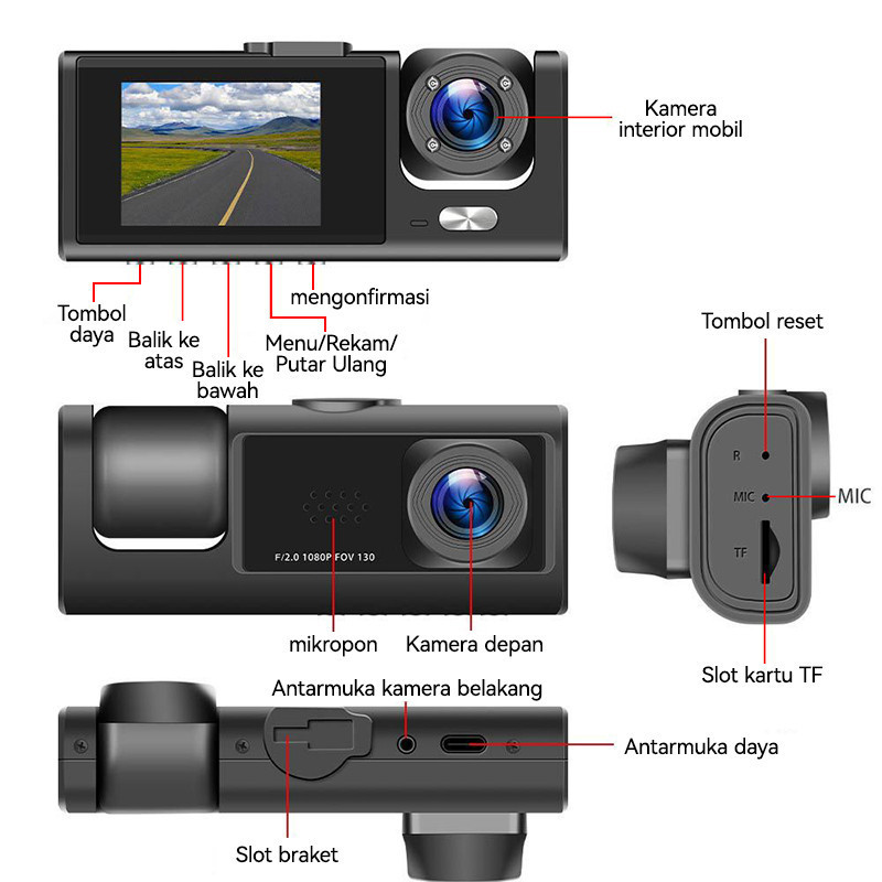 3 Lens Dashcam 64G HD 1080P WIFI dashcam mobi Kamera Dash Kamera Dashcam Lensa Loop 24 Jam