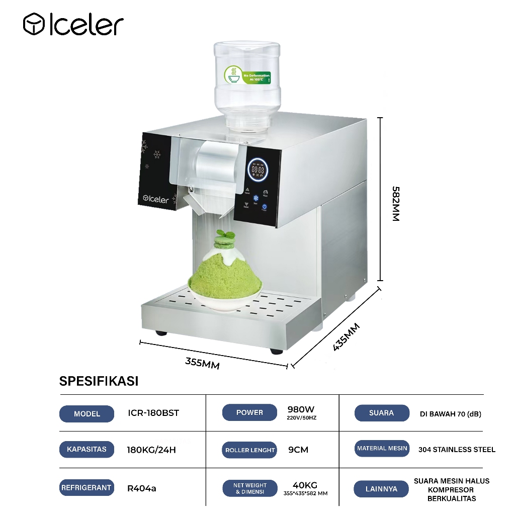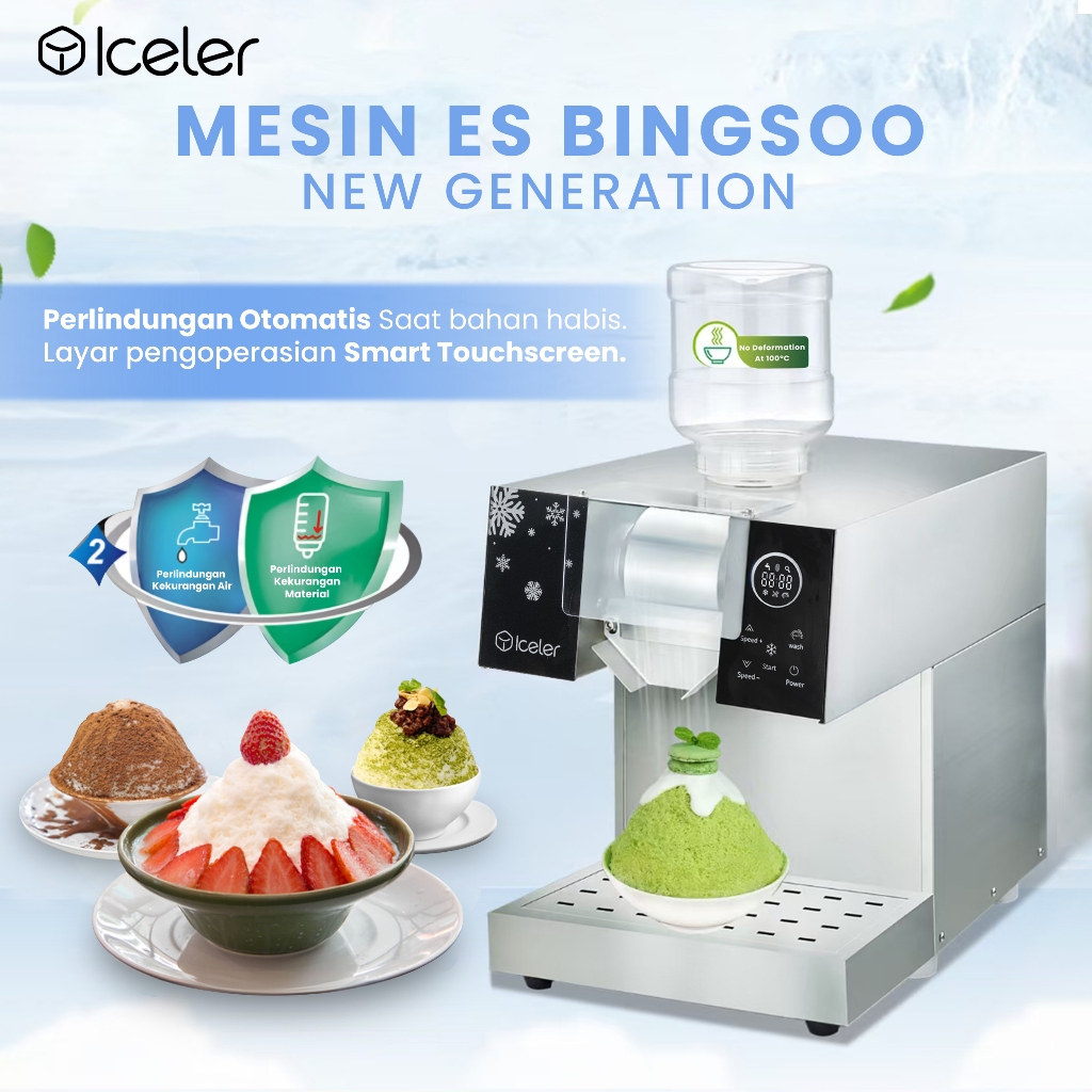 Iceler Mesin Es Bingsoo 980Watt 180kg/24jam Bingsu Snow Ice Maker Es Salju Touch Screen Otomatis