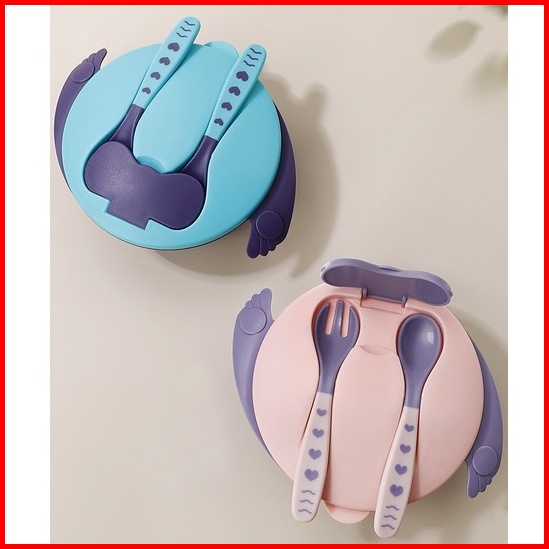Tempat Makan Bayi Mangkok Sekat Set Tutup Sendok Garpu Dan Suction Silicone Anti Tumpah