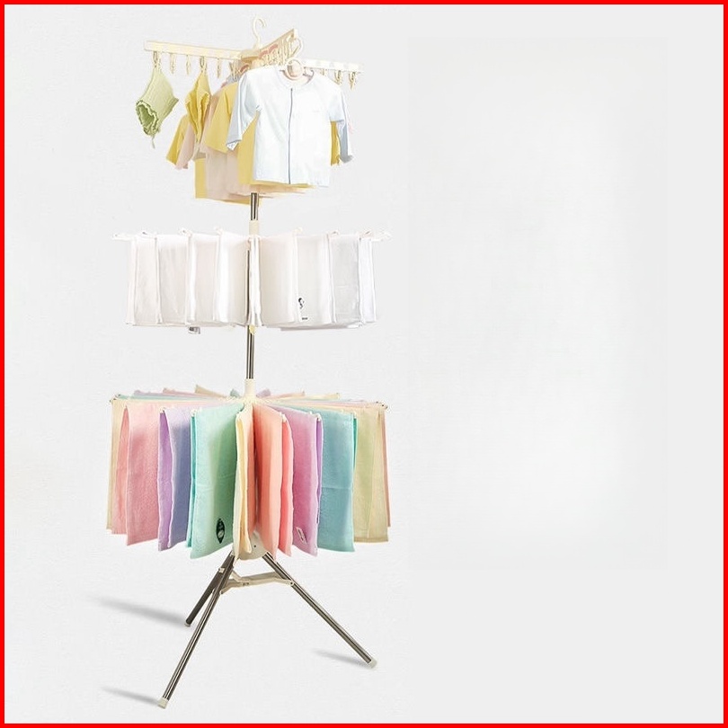 Jemuran Bayi Lipat Jemuran Baju Menara 3 Susun Plastik Gantungan Baju Portable Hanger Lipat