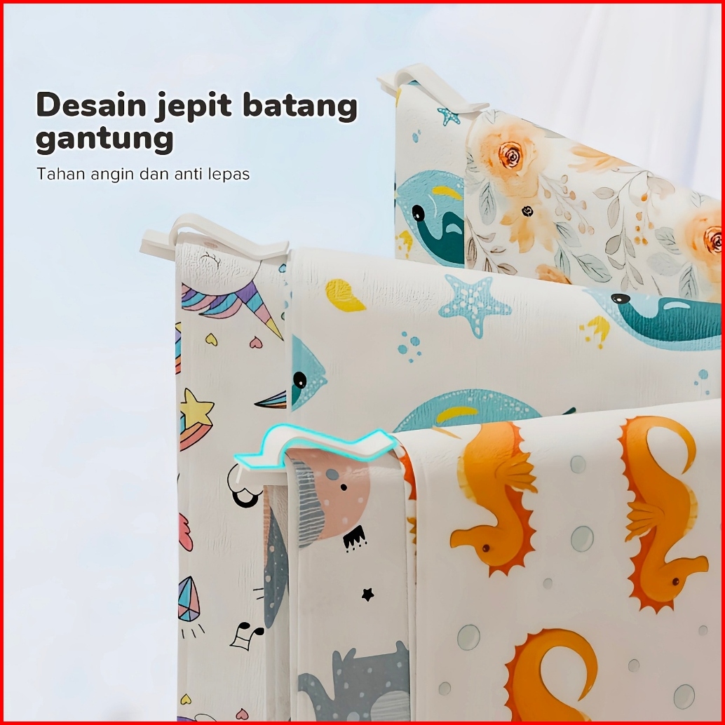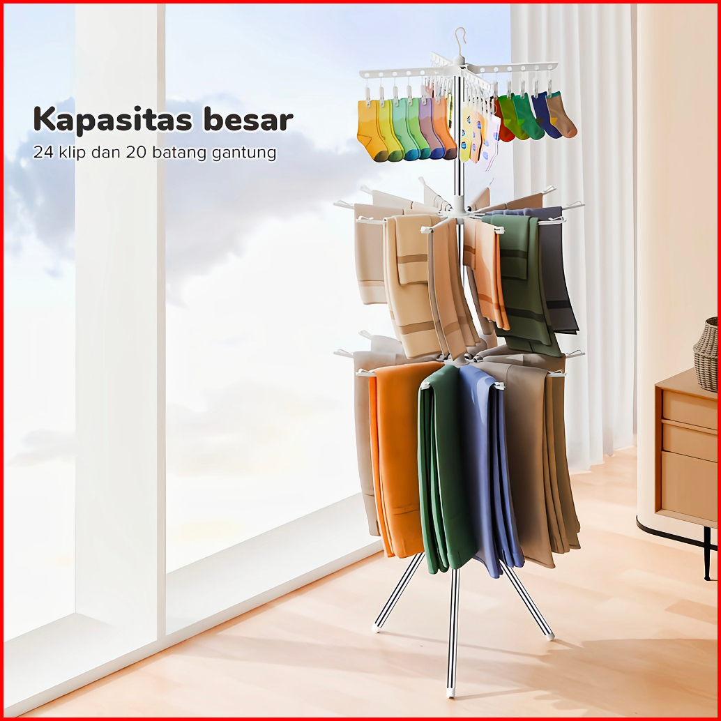 Rak Handuk Lipat Menara Jemuran Bayi Lipat Gantungan Baju Portable Putih 10jari-jari