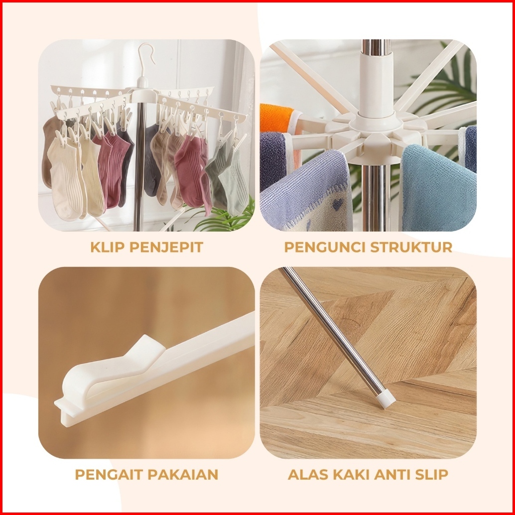 Jemuran Baju Bayi 3 Lipat 24 Jepitan Baju Jemuran Menara Baju Bayi Tripod Dengan Hanger Rotasi