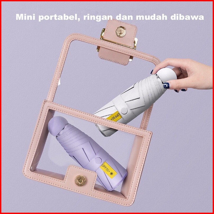 Payung Lipat Mini Anti Uv Ringan Tahan Panas Hujan Sinar Matahari Premium Lapis Hitam Upf50 Mini Cute Umbrella Payung Li