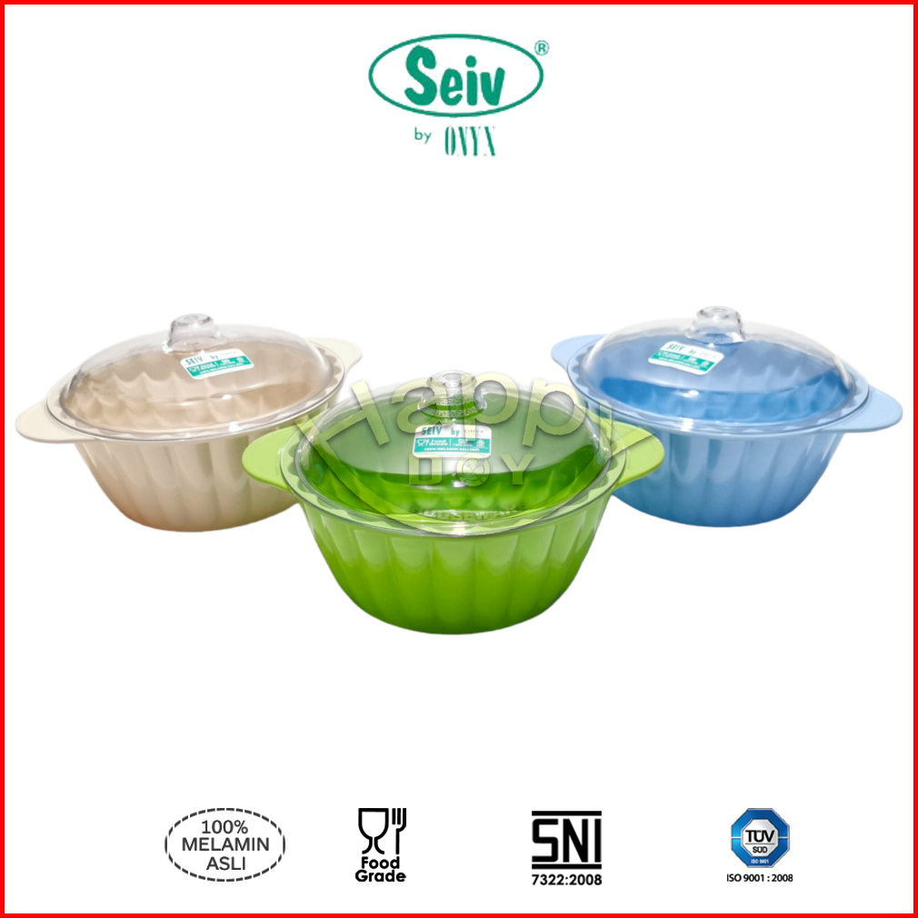 Wadah Saji Wadah Lauk Wadah Makanan Casserole Melamin Bulat Tutup Seiv 1500ml