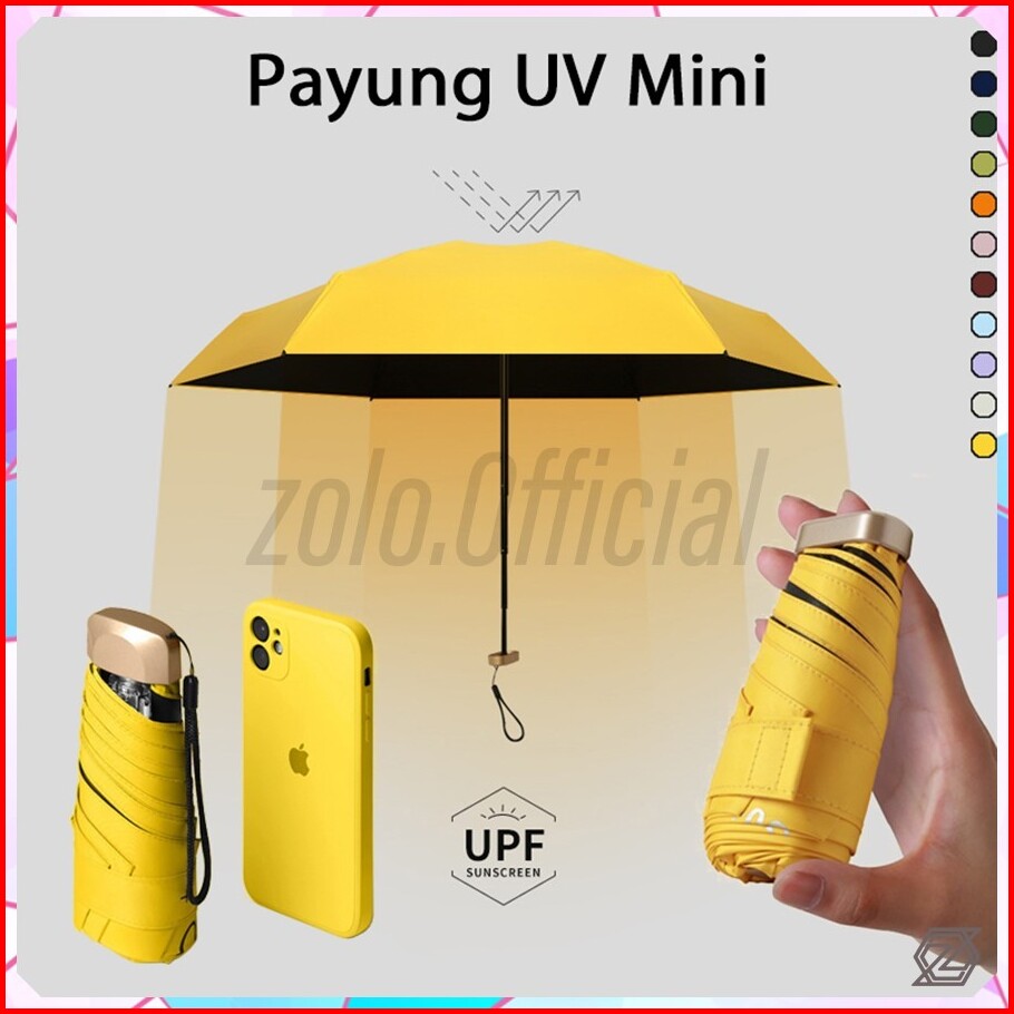 Zolo Payung Lipat Mini Anti Uv Payung Travel Anti Matahari Upf 50