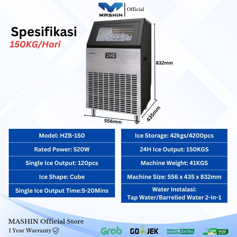 Mashin - Mesin Es Batu Kristal 150kg/Hari Ice Cube Maker Big Capacity