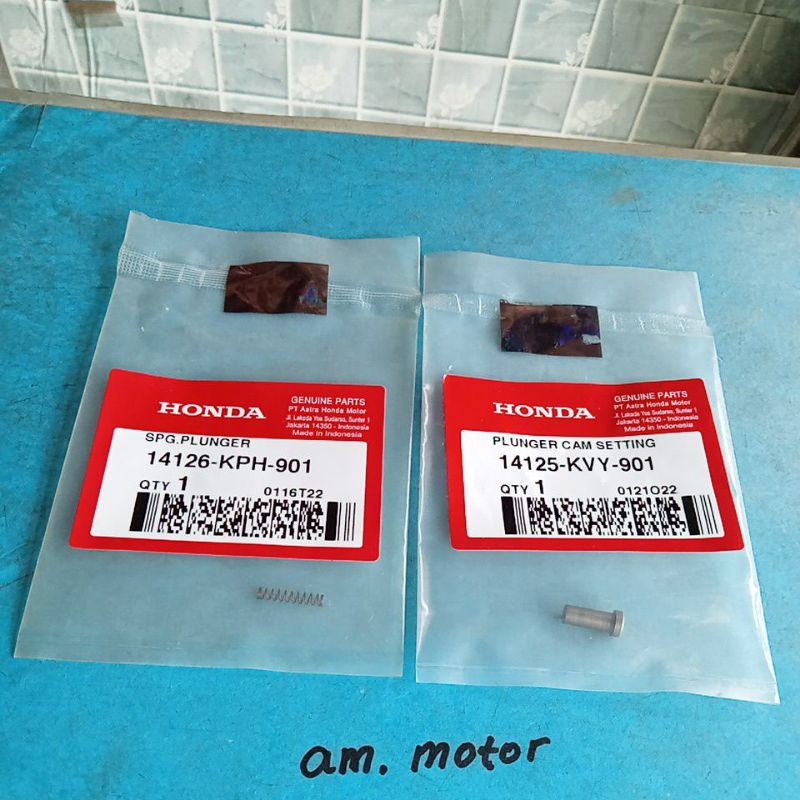 plunger cam setting + per, 1 set, beat , kvy, dekompresi, decompresi, kemasan baru, honda ori.