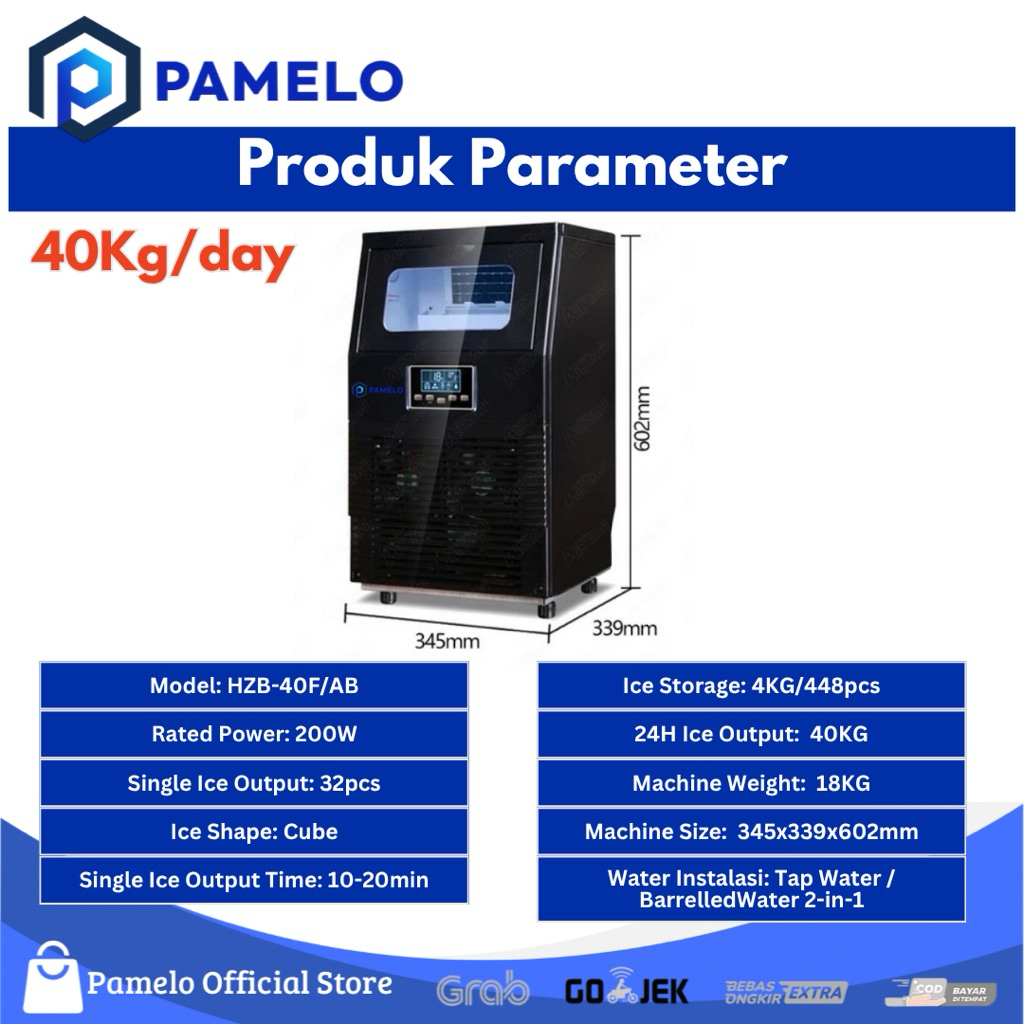 (READY TIDAK PO)HICON HZB-40 Mesin Pembuat Es Batu Kristal 40Kg/Hari Ice Cube Maker Machine