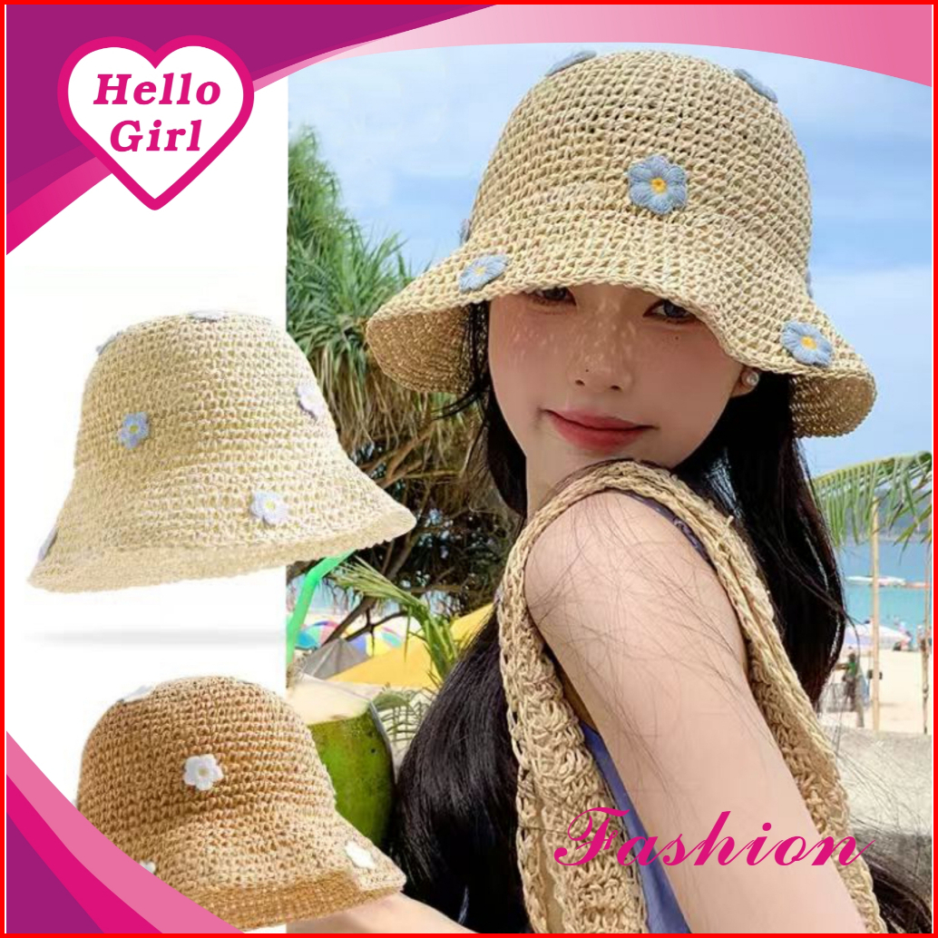 Hello Girls Mz98 Topi Bucket Wanita Model Rajut Motif Bunga Terbaru
