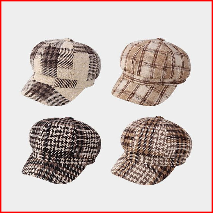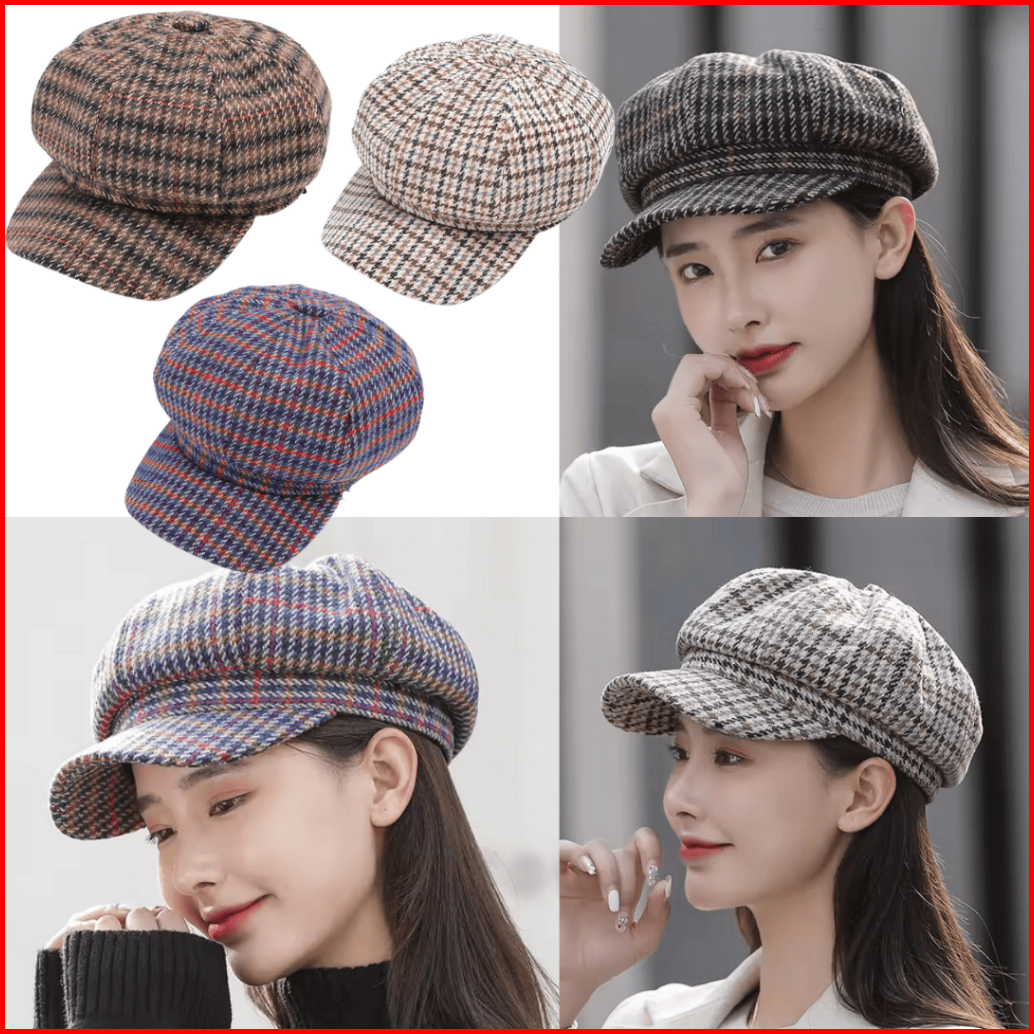 Kiama - Wh02 - Topi Baret Hitam Oktagonal Gaya Retro Untuk Wanita Dan Pria Gaya Korea Inggris Untuk Wanita Topi Fashion