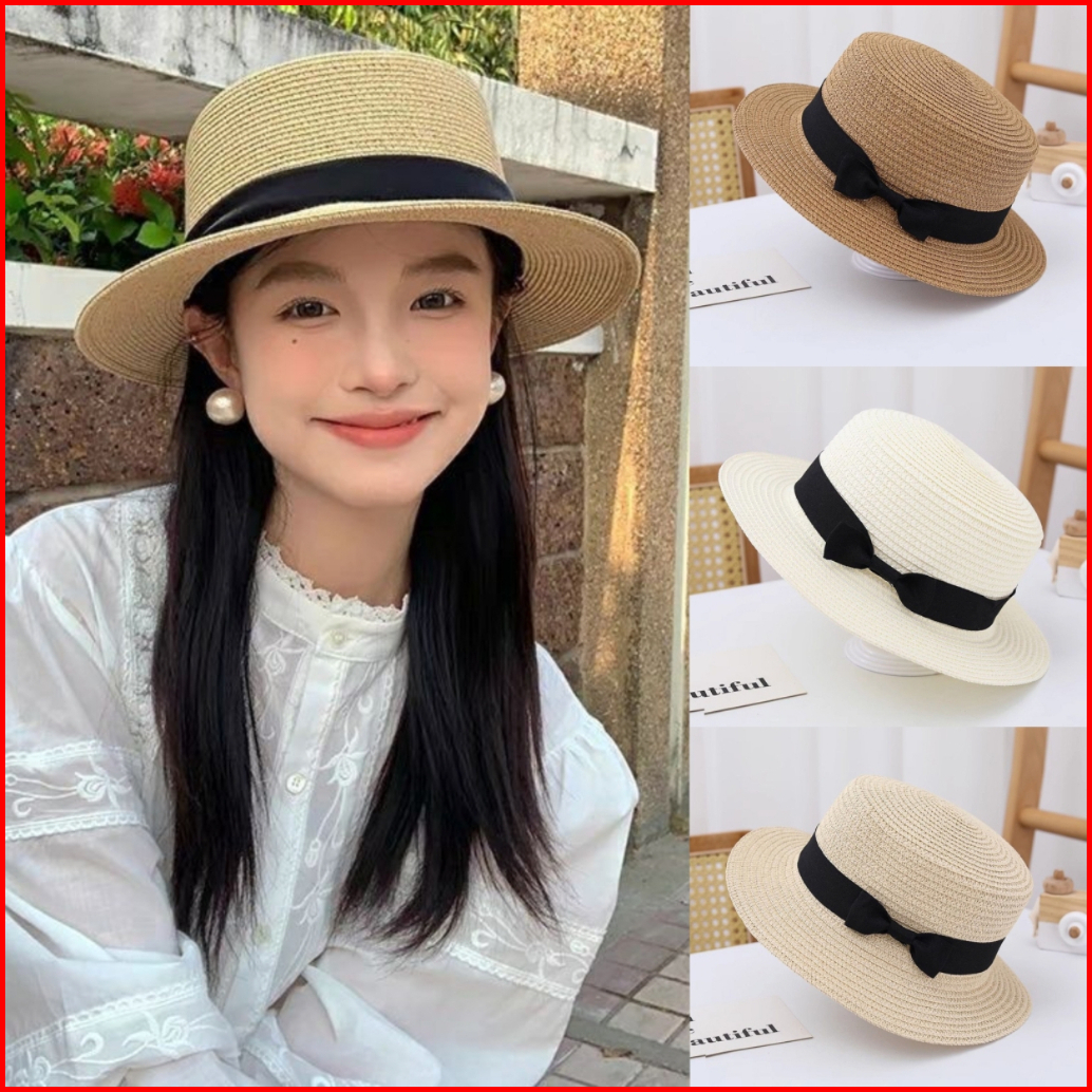 Mtt Topi Pantai Wanita Aksen Pita Topi Fedora Anti Panas Summer Hat Anti Uv