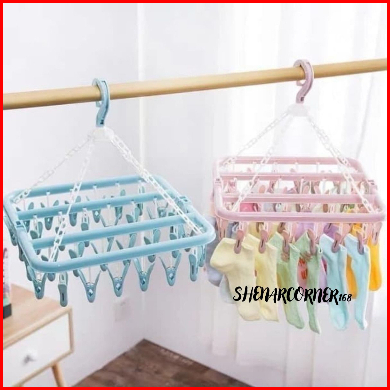 Jemuran Kaos Kaki Bra Celana Dalam Gantungan Jepitan Jemuran 32 Pcs Hanger Lipat Jemuran Baju Bayi - Molly Hanger 32 Pcs