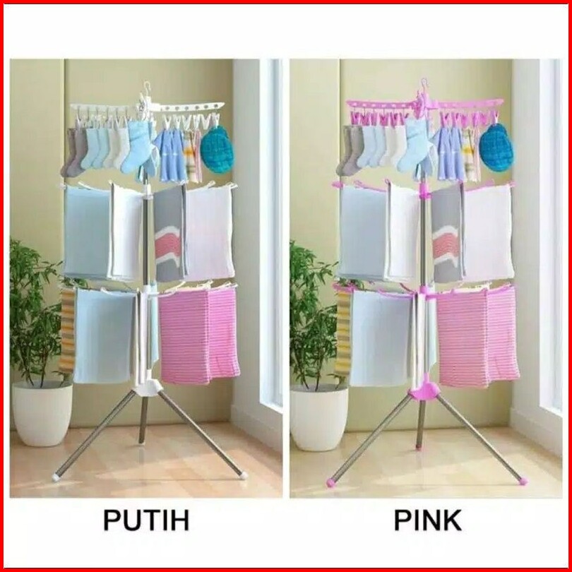 Jemuran Bayi Menara Rak Jemuran Baju Lipat 3 Tingkat Jemuran Handuk Pakaian Bayi Praktis Tripod Hanger Laundry My
