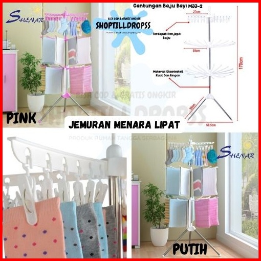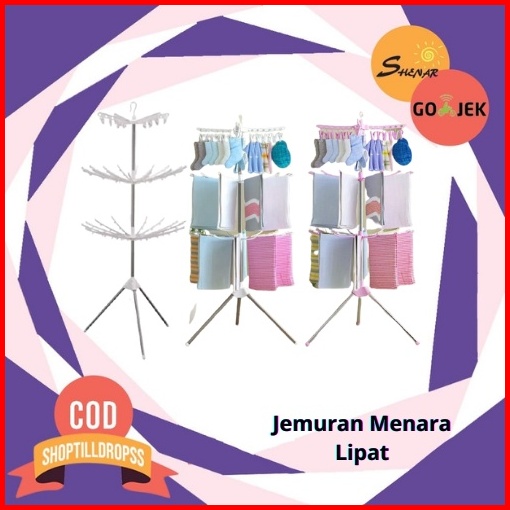 Grartis Ongkir - 3 Tingkat Jemuran Menara Lipat Jemuran Baju Model Menara Susun 32 Gantungan 24 Penjepit Jemuran Baju Ba