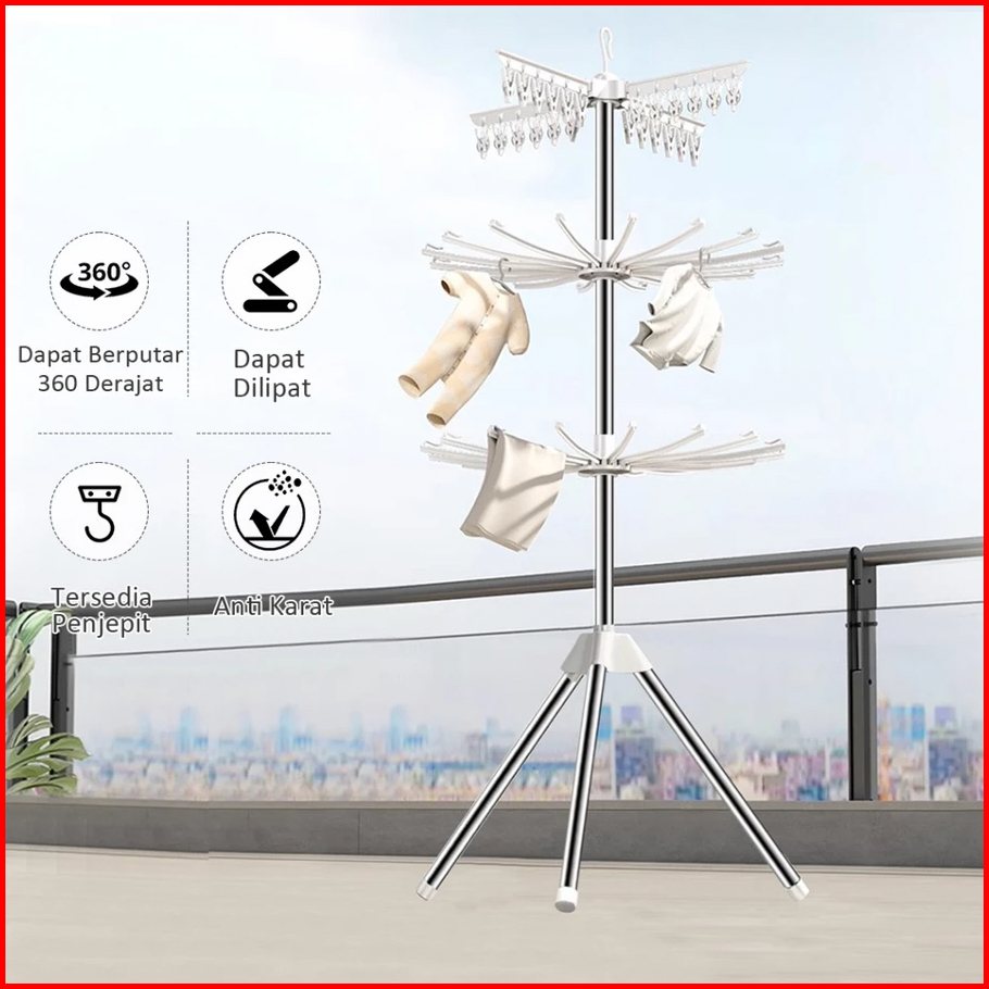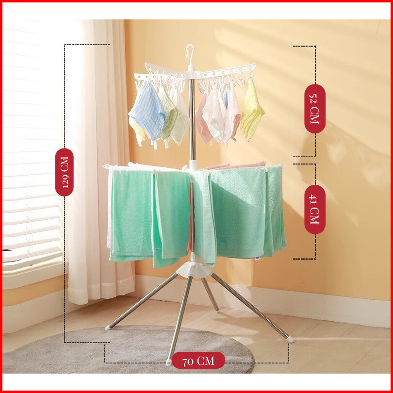 Rak Handuk Lipat Menara Jemuran Bayi Lipat Gantungan Baju Portable Putih 10jari-jari