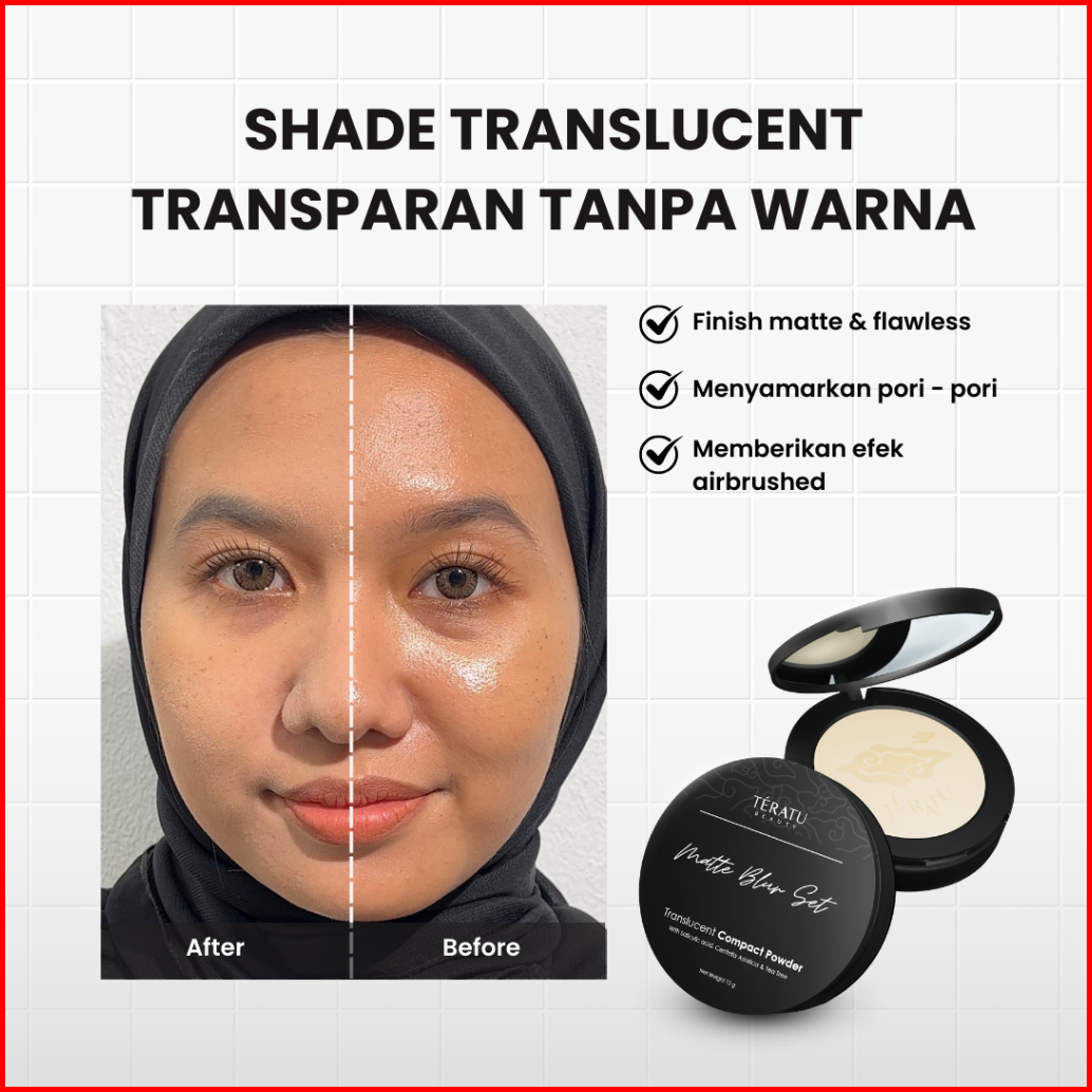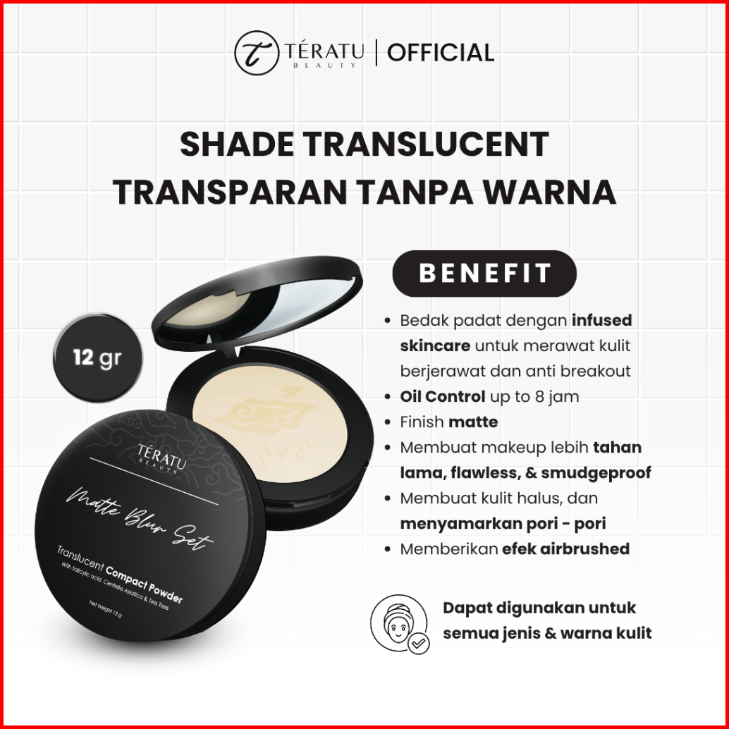 Teratu Beauty Matte Blur Set Translucent Compact Powder - 12 Gr Bedak Padat Tahan Minyak Blurin Pori Acne Care Infused