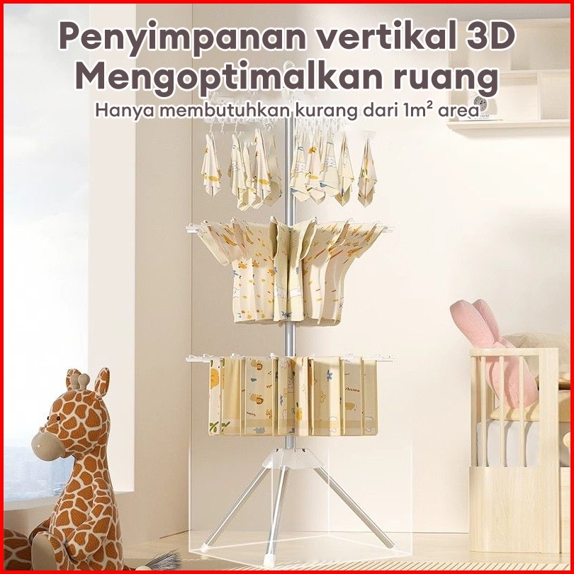 Jemuran Baju Bayi Stainless 3 Susun Jemuran Menara Rak Jemuran Baju Lipat Anak Rak Jemuran 48 Klip
