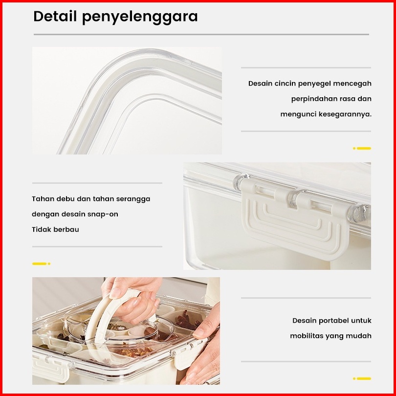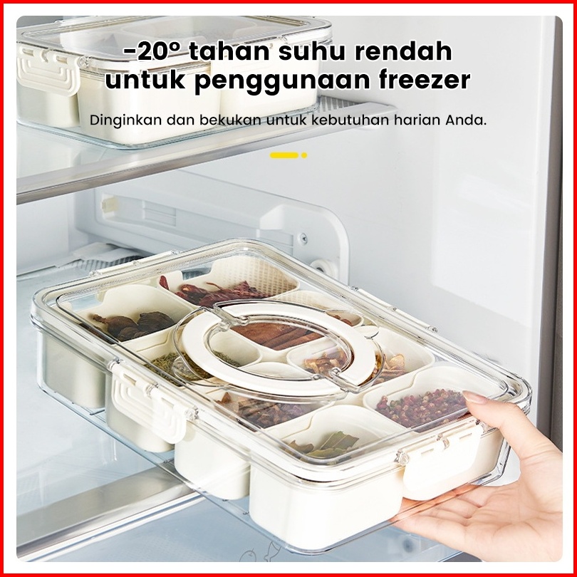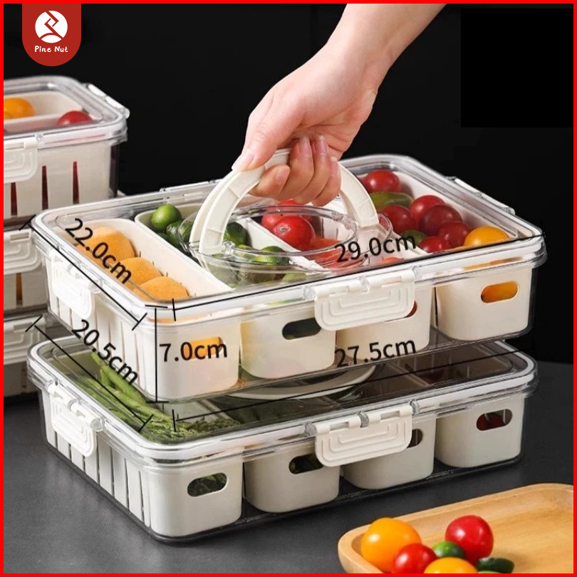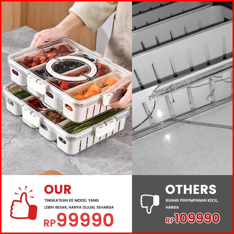 Kotak Penyimpanan Kulkas Kedap Udara 4 Sekat Saringan Anti Lembab Organizer Makanan Praktis