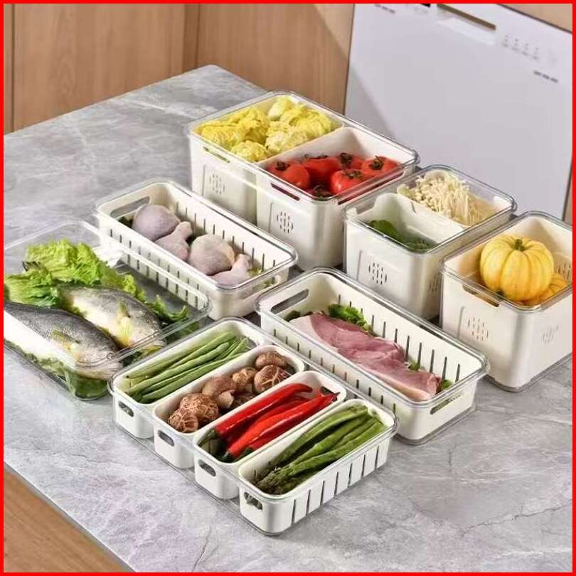 Multica Box Paket Jumbo Kontainer Kulkas Hemat Oples Kotak Tirisan Saringan Wadah Cabai Bawang 4 Sekat Tempat Buah Sayur