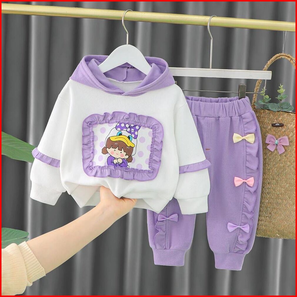 Sweater Bayi Perempuan Setelan Hoodie Bayi Setelan Sweater Anak Perempuan Motif Bebek Pita Setelan Sweater Hoodie Bayi P