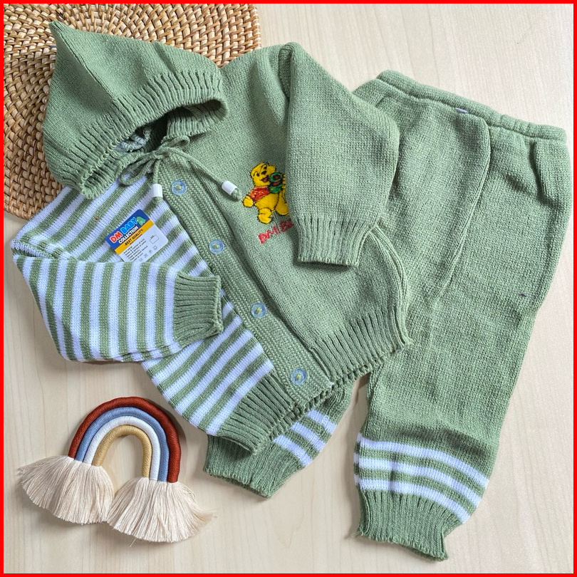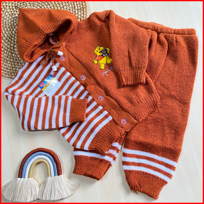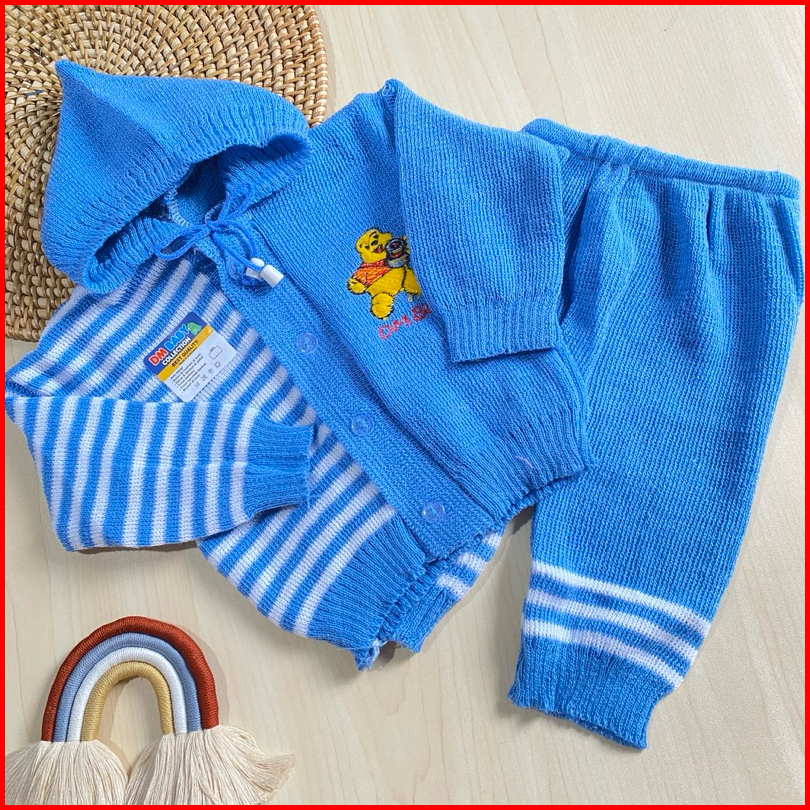 Setelan Rajut Belah Salur 0-6 Bulan Max Bb 7 Kg Sweater Bayi Rajut Newborn Bulan Setelan Jaket Celana Bayi Dm Baby