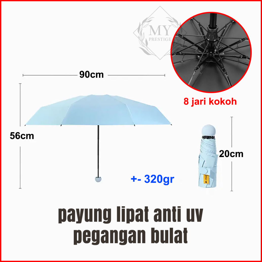 Payung Lipat Payung Anti Panas Payung Anti Uv Umbrella Payung Kecil Gagang Bulat