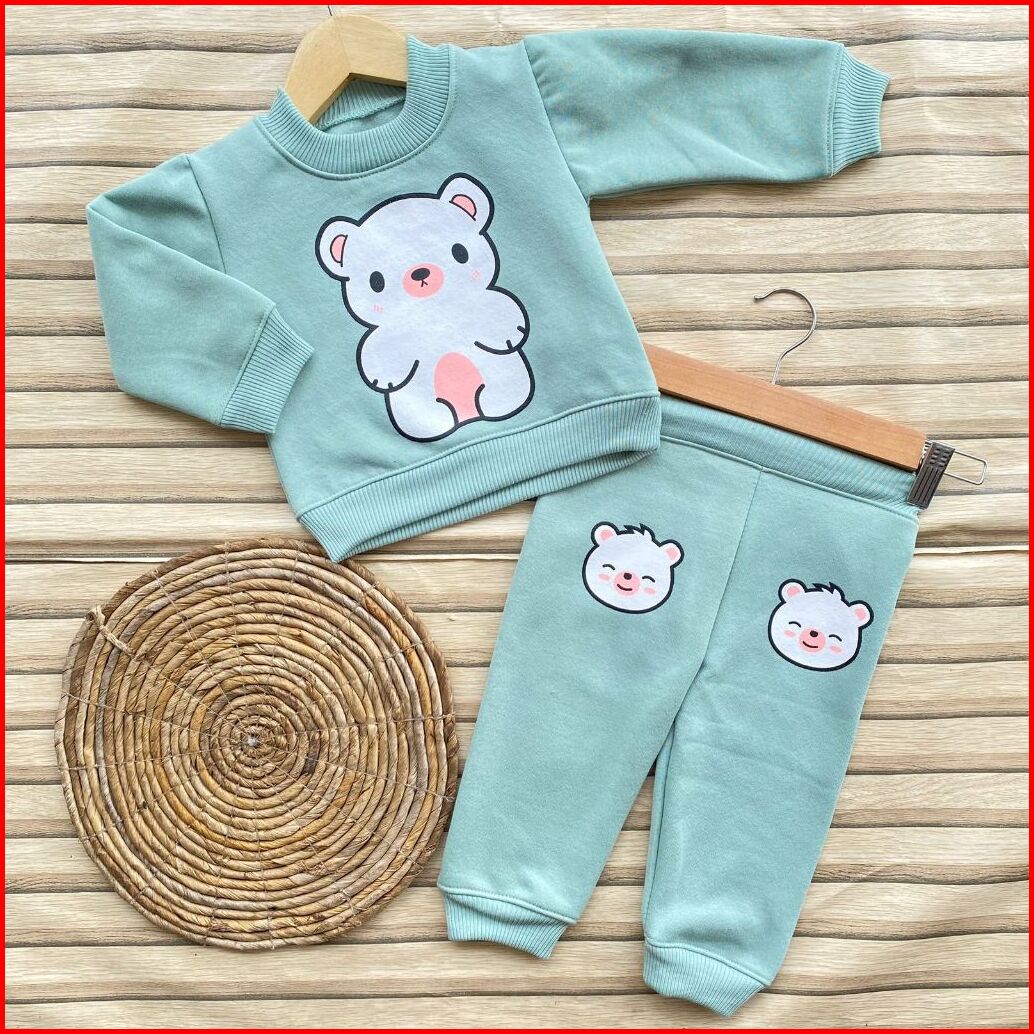 Setelan Baju Bayi Hangat Motif Beruang Setelan Sweater Crewneck Celana Joger Usia 3-12 Bulan Setelan Baju Hangat Bayi An
