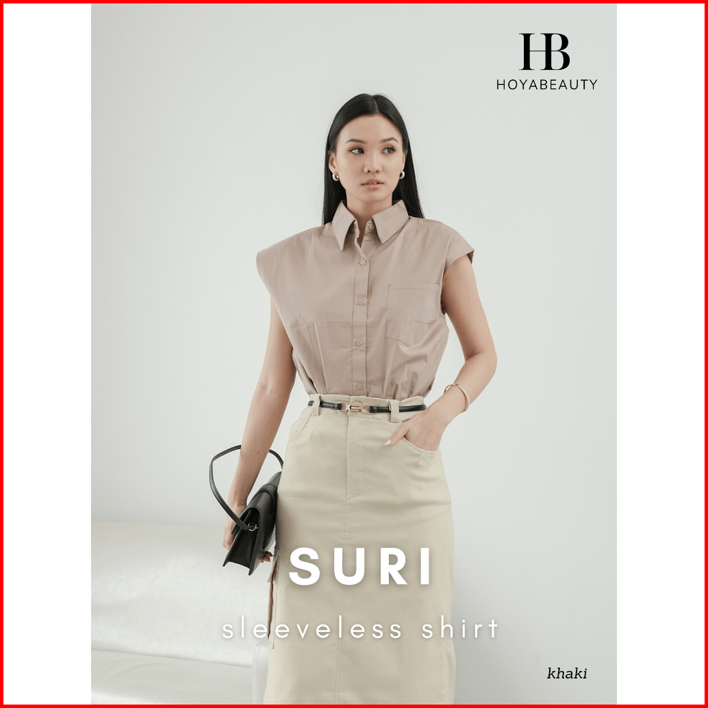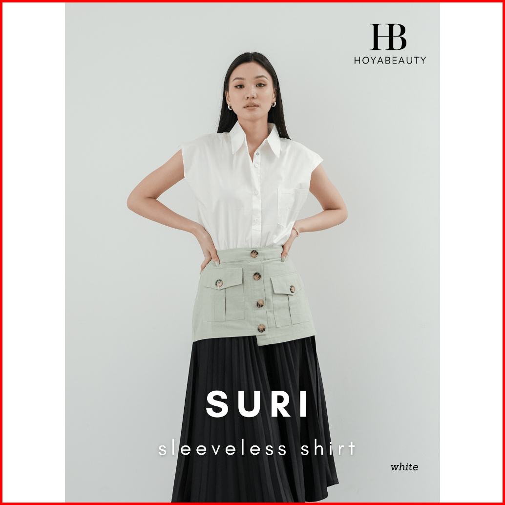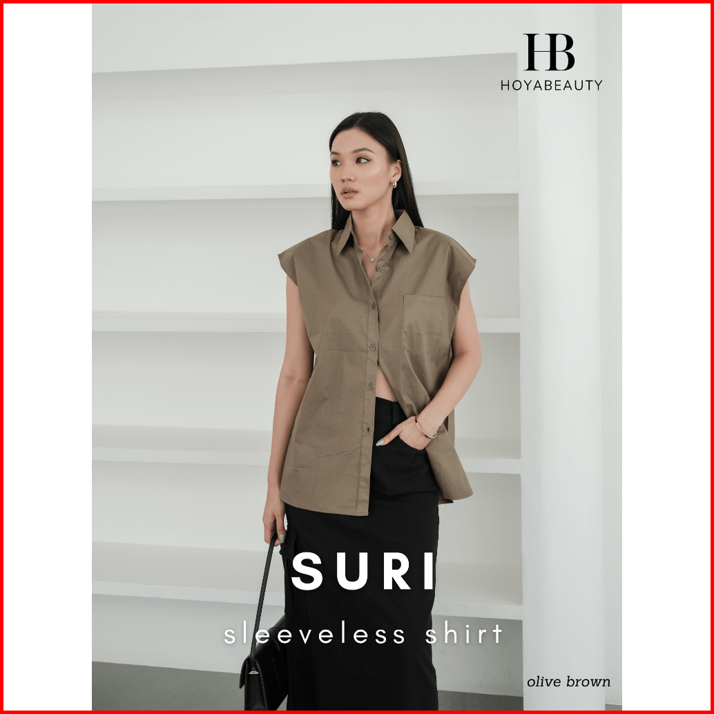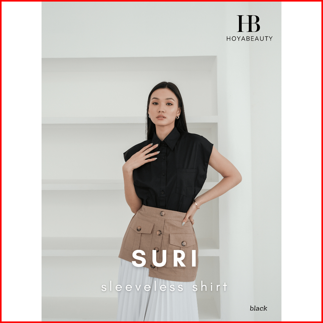 Hoyabeautyid Suri Shirt - Basic Premium Sleeveless Shirt - Blouse Wanita Polos Basic Atasan Baju Kemeja Lengan Buntung P