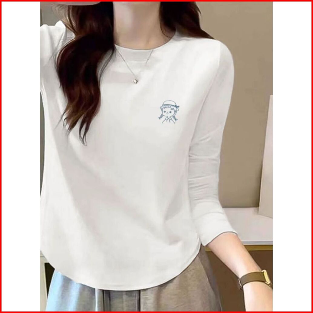 Baju Oblong Wanita Lengan Panjang Bahan Spandek Distro Printing Premiun Atasan Baju Kasual T-shirt