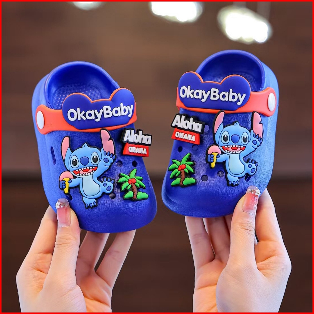 Promo 12.12 Import Okaybaby B455 Sandal Slop Stitch Anak Laki-laki Anak Perempuan Kekinian Casual Sendal Baim Anak Lucu