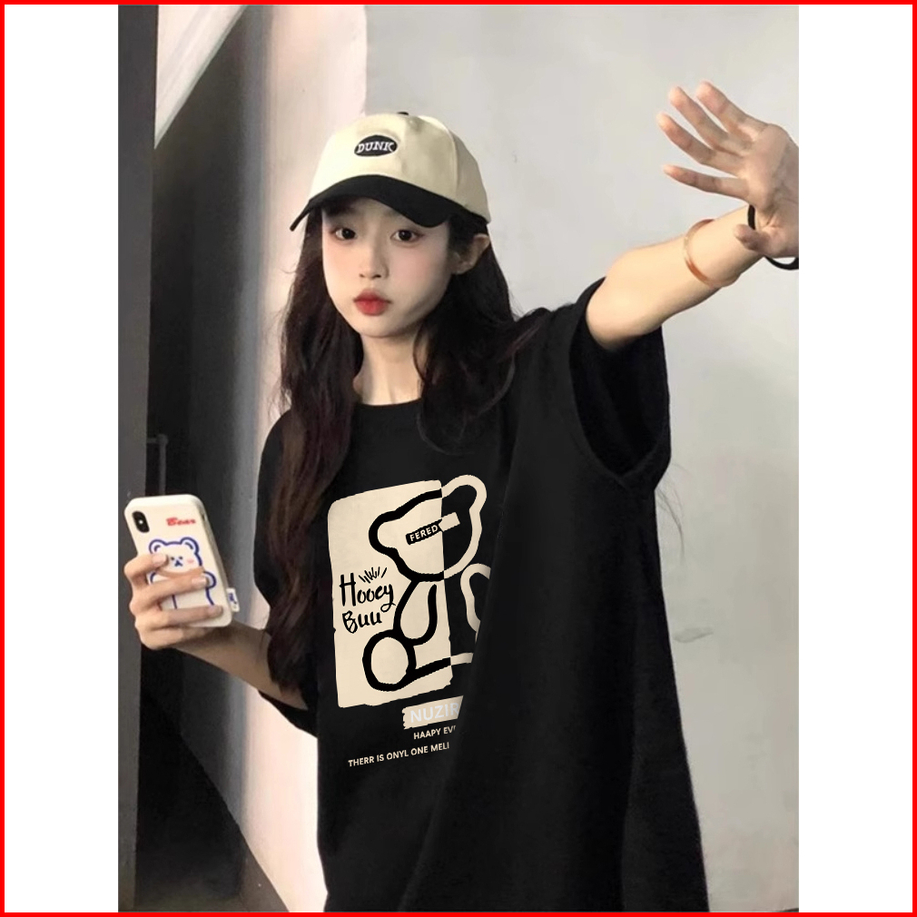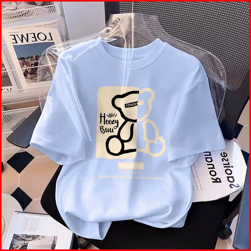 Xzhainv Kaos Lengan Pendek Longgar Beruang Wanita Korea Pakaian Wanita Gaya Modern Atasan Biru Modis Dan Elegan Gaya Kor