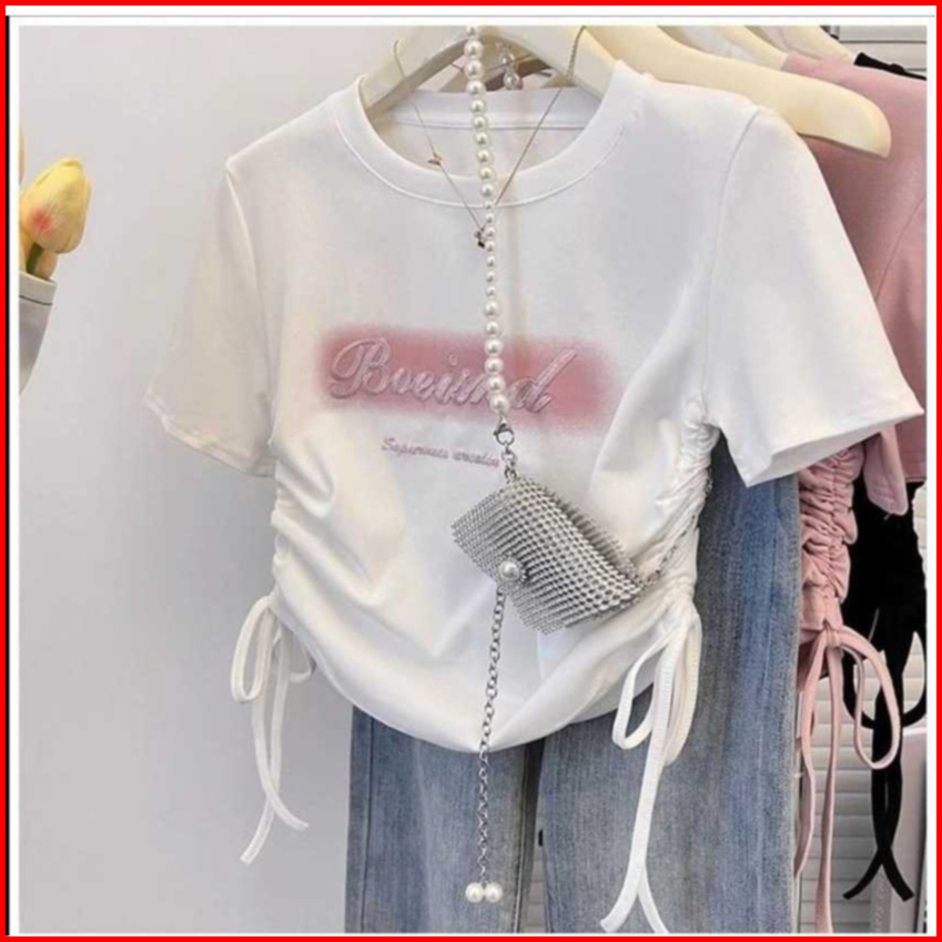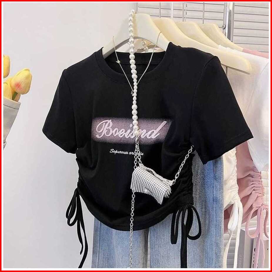 Tshirt Boeisnd Baju Serut Wanita Crop Top Baju Kaos Wanita Kekinian