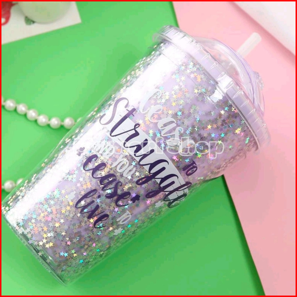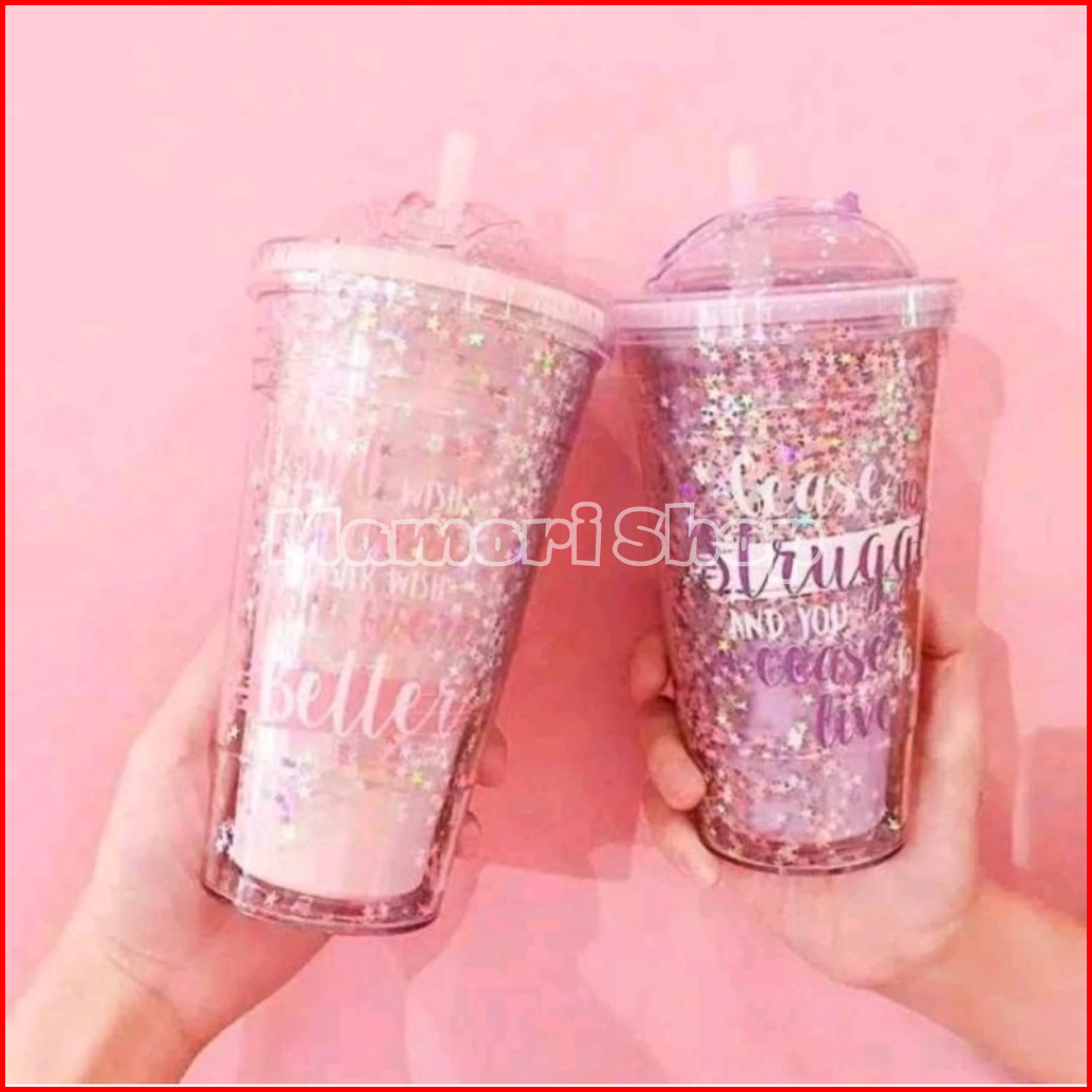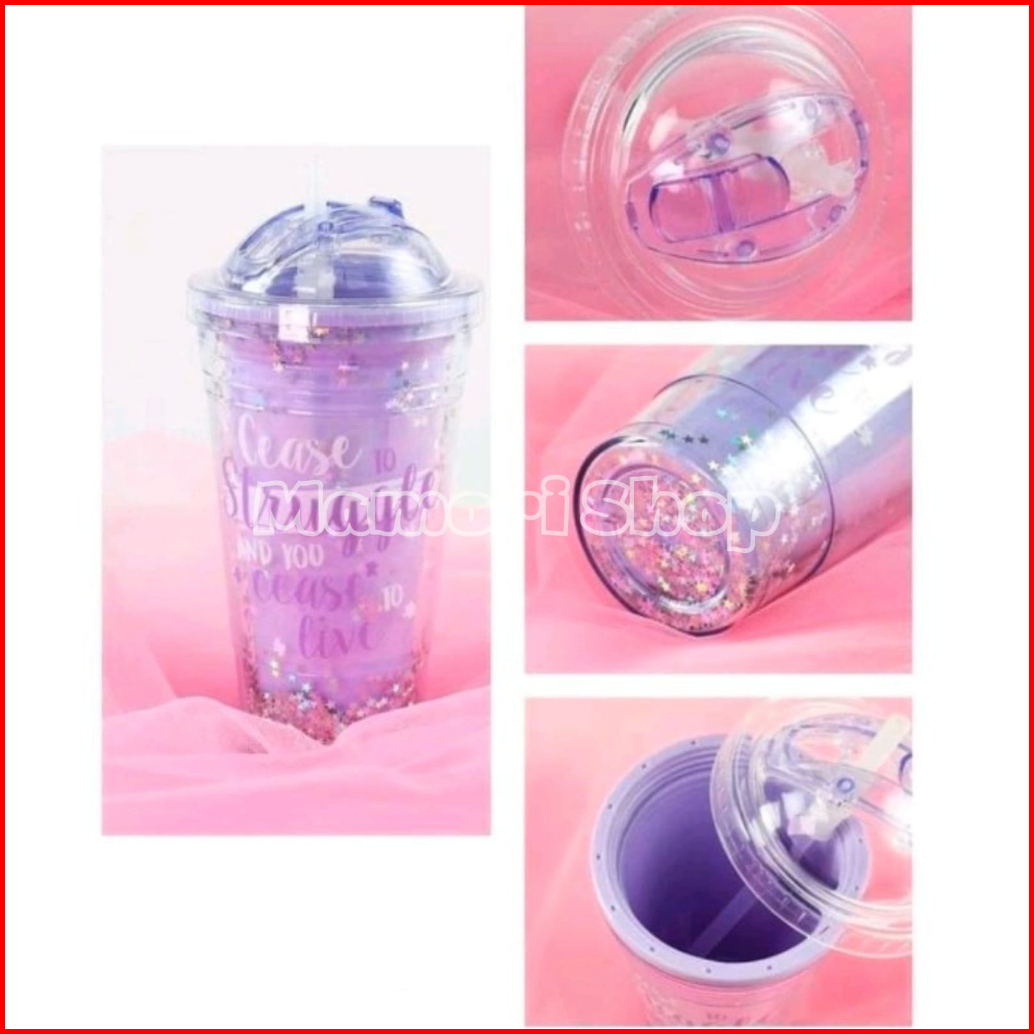 Mamori Shop Glitter Tumbler Cups Blink Gelas Botol Minum Air Sedotan 450ml Glitter Tumbler Cups Blink Gelas Botol Minum