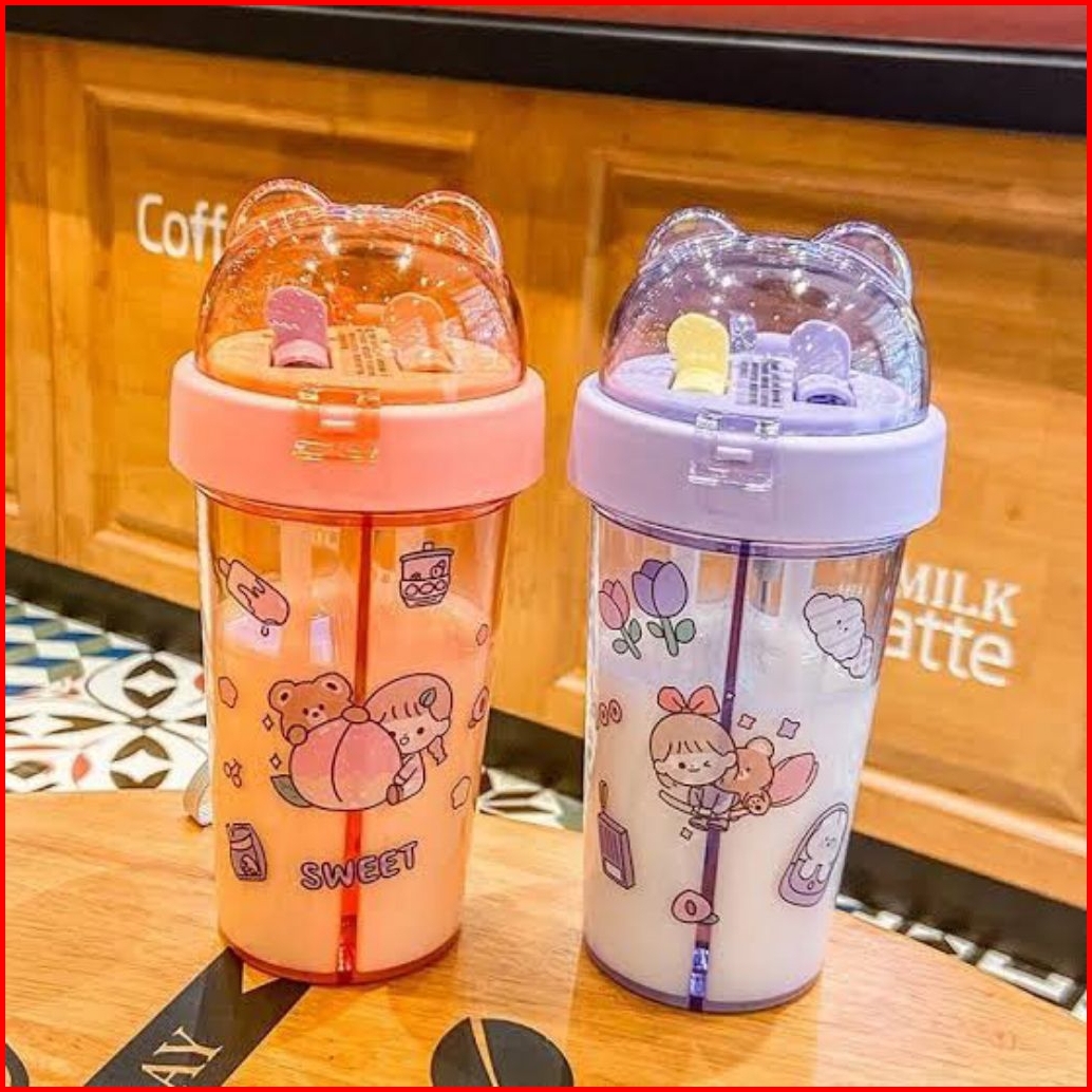 Botol Minum Anak Dua Sisi Botol Couple Dua Sedotan Dua Sisi