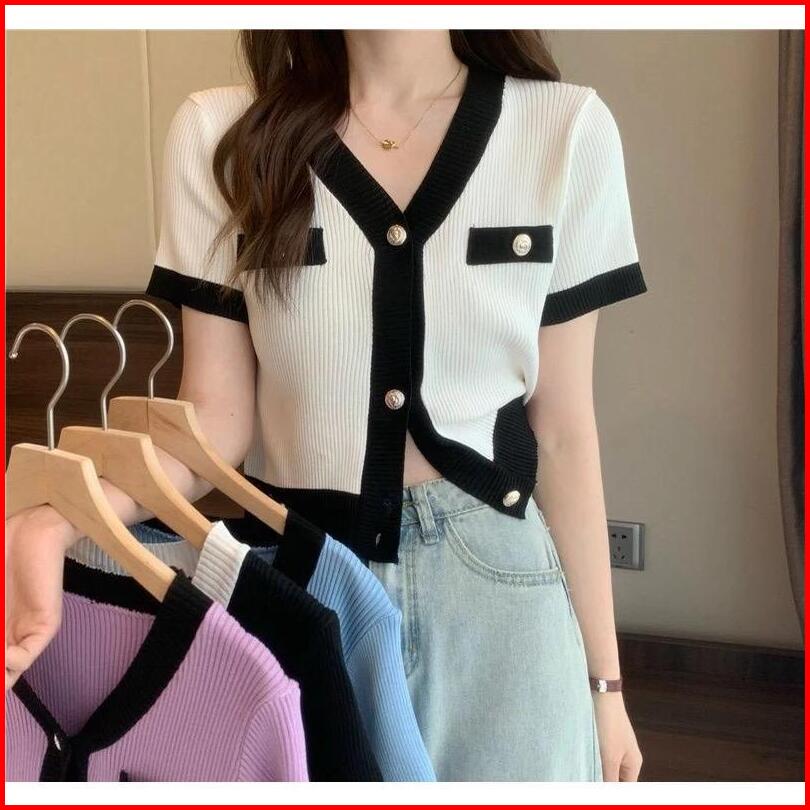 Atasan Blouse Wanita Button Style Korean Kaos Top Baju Wanita Basic Kancing Aktif Short Sleeve