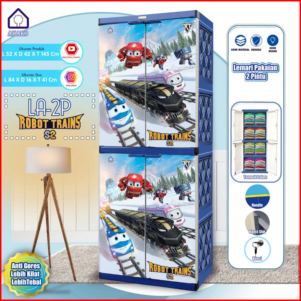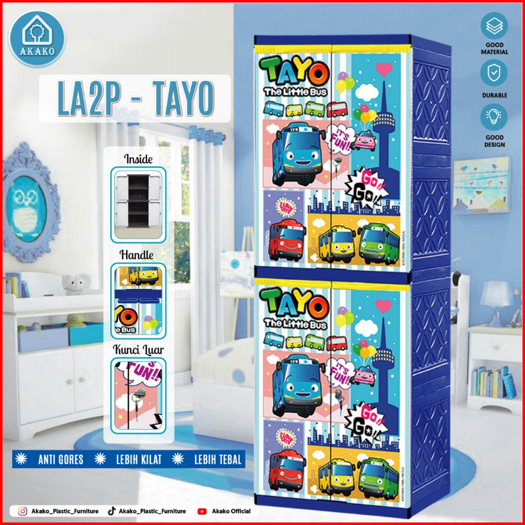 Lemari Pakaian Plastik 2 Pintu 4 Susun La2p Akako Tayo Jerapah Owl Kunci Kokoh Kuat