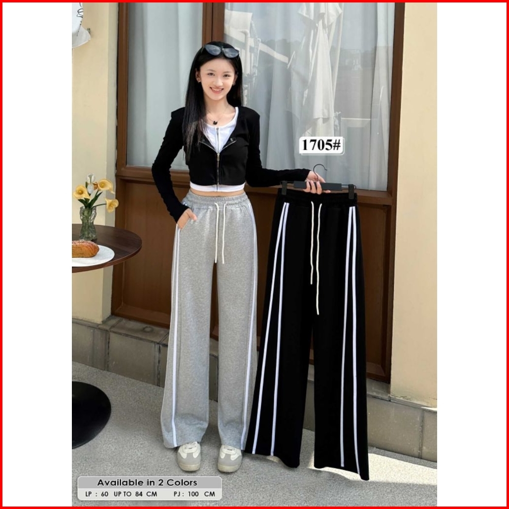 Celana Panjang Garis-garis Bahan Kaos Stretch