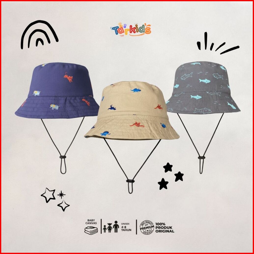 Topi Bucket Anak Motif Hewan Topi Anak Anti Panas Dengan Tali Pengaman Cocok Untuk Liburan