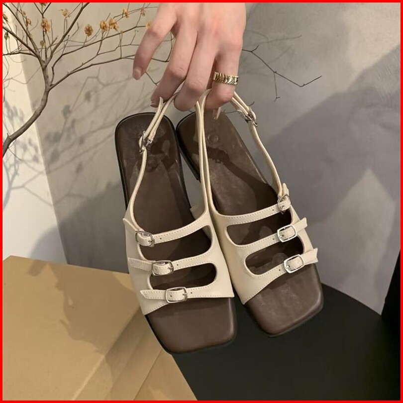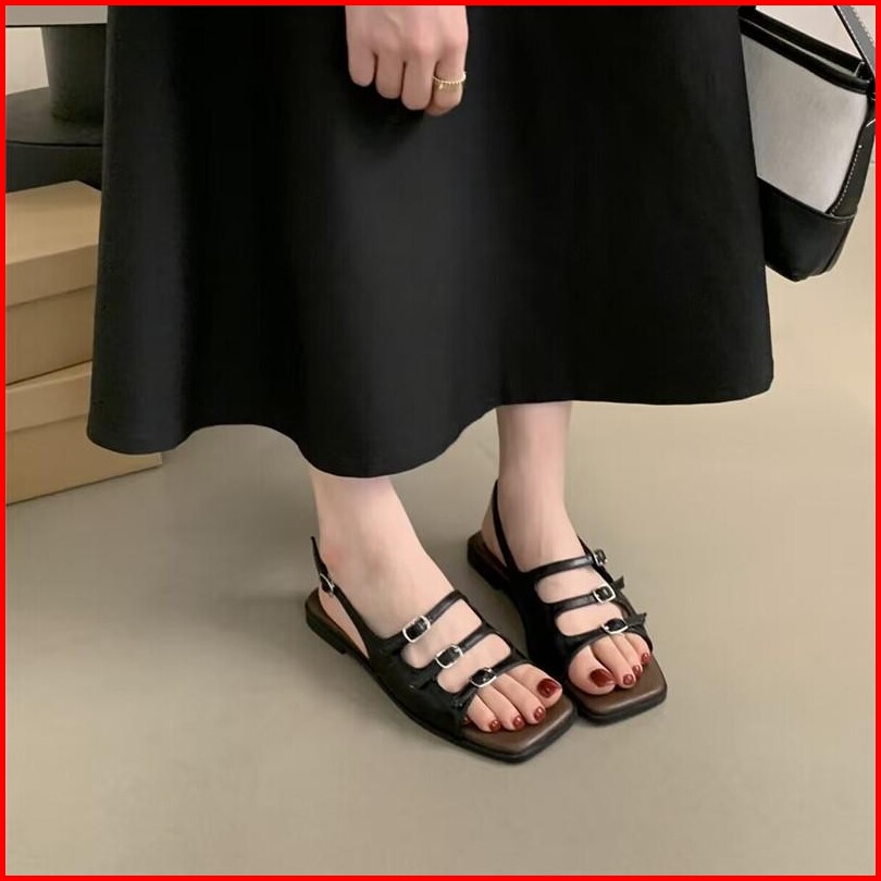 Atikota Fashion Flat Nyaman Gesper Dapat Disesuaikan Lembut Luar Ruangan Anti Selip Sandal Wanita