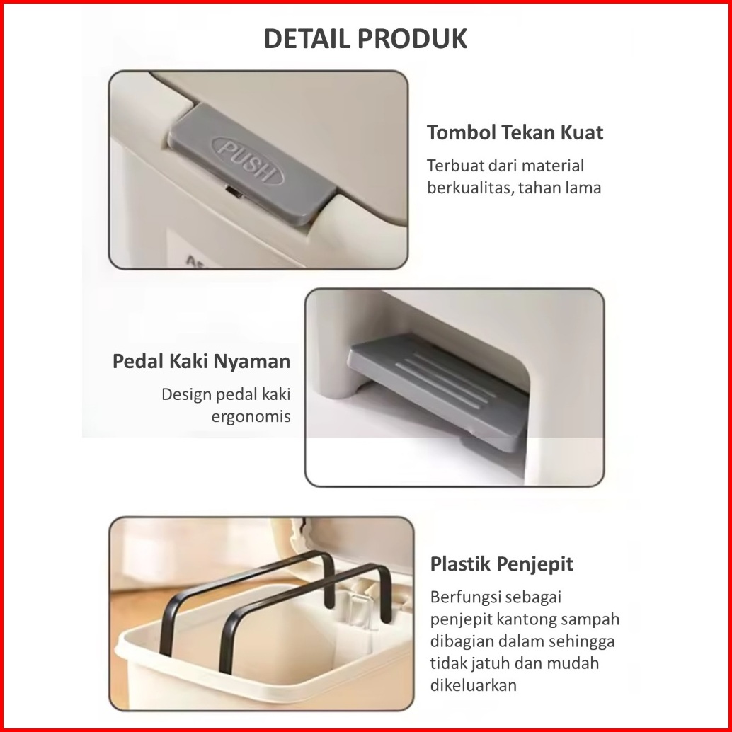 Tempat Sampah Injak 8l 15l Tong Sampah Plastik Tertutup Trash Bin Kotak Sampah Dapur Kamar Mandi Ruang Tamu Kamar Tidur