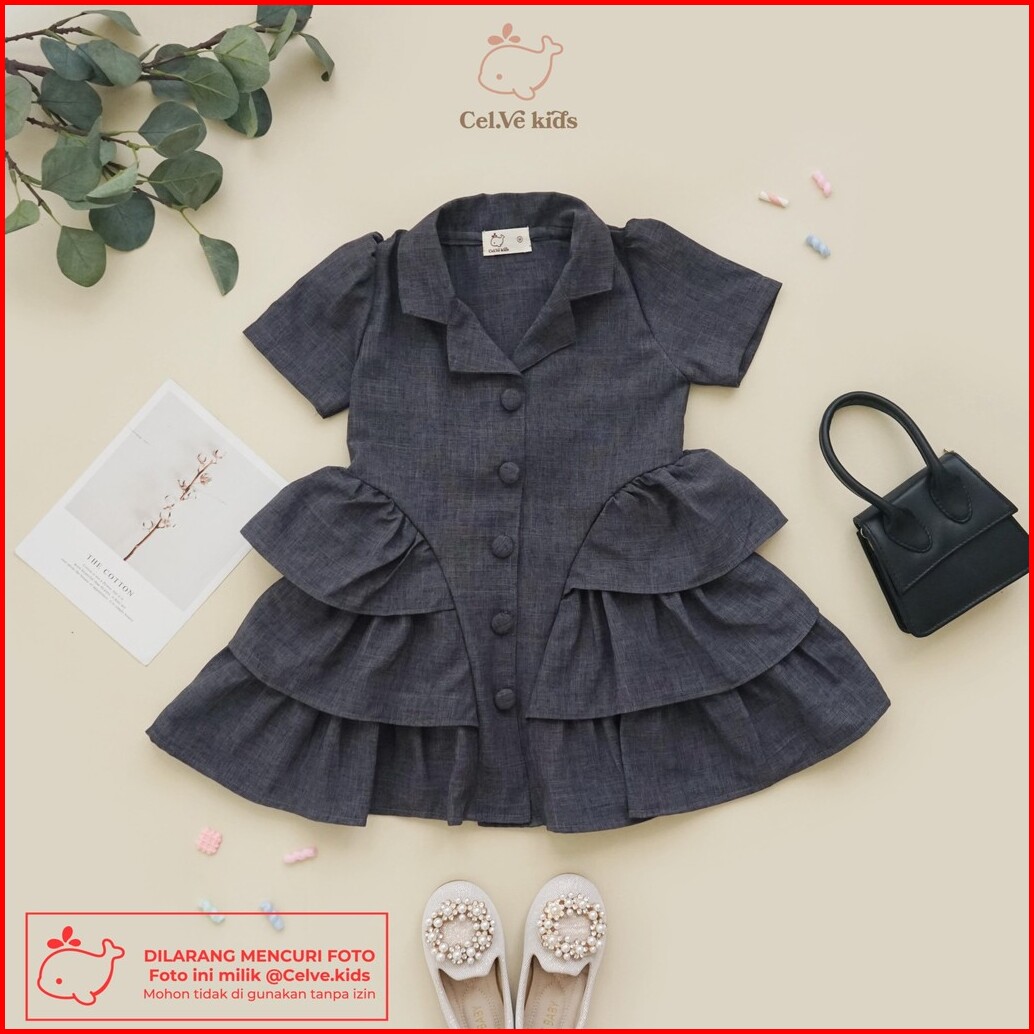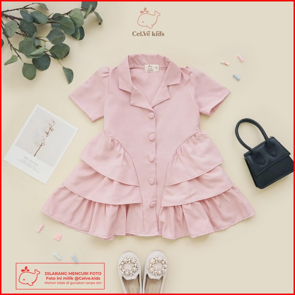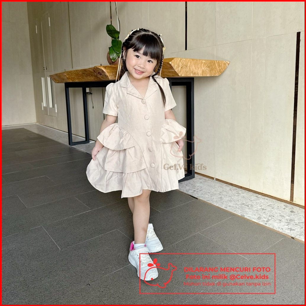 Celvekids - Dress Monica Baju Rok Anak Perempuan Korean Style Linen Premium Usia 1-8th