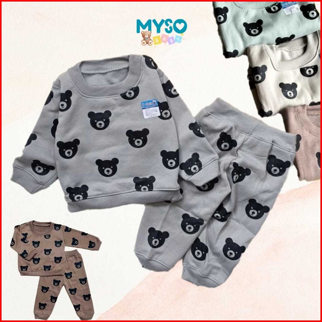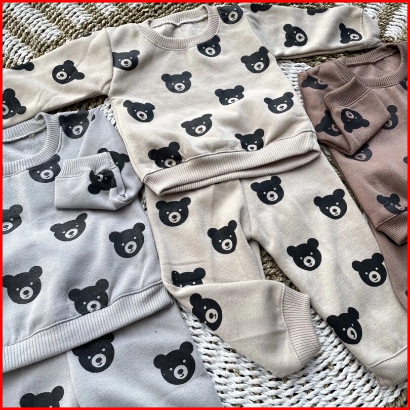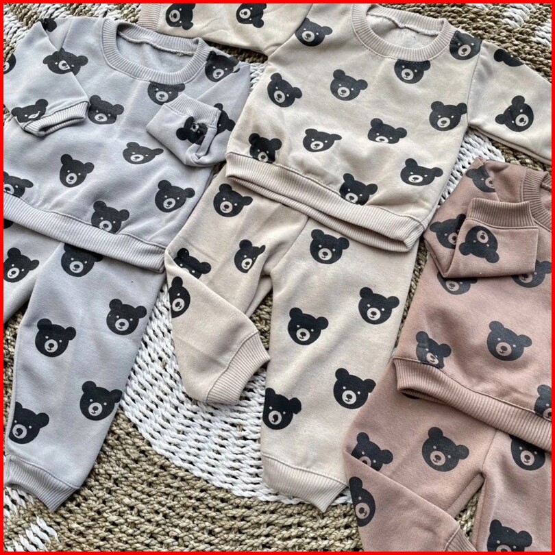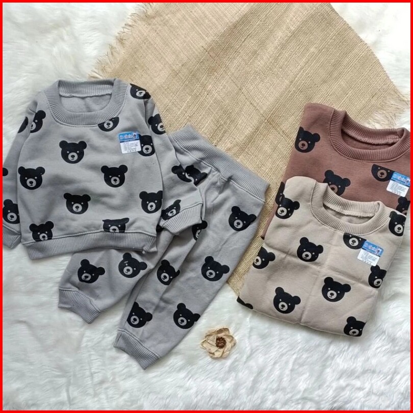Sweater Bayi Set Dengan Celana Joger Motif Bear Beruang Usia 3-12 Bulan Jaket Bayi Setelan