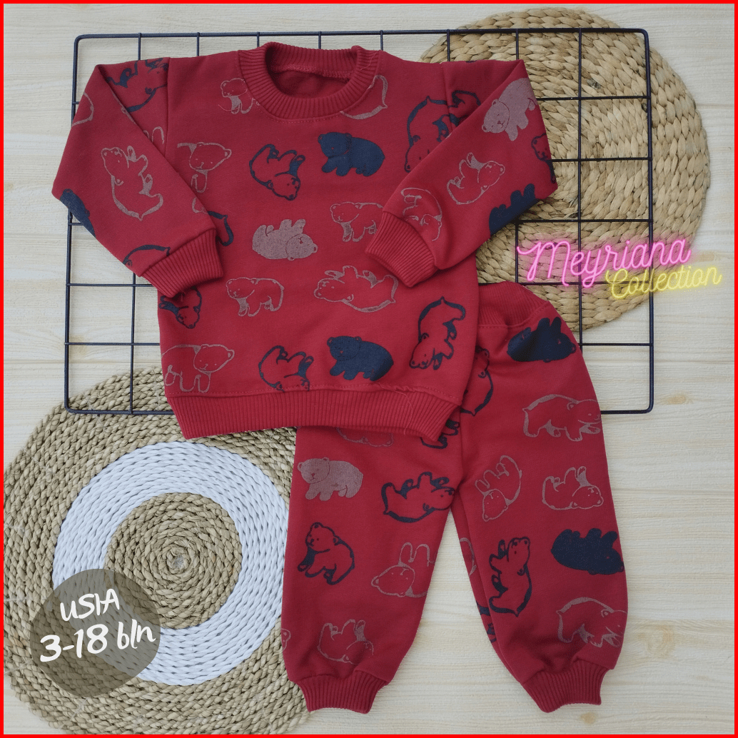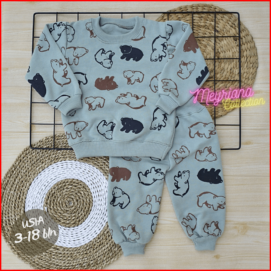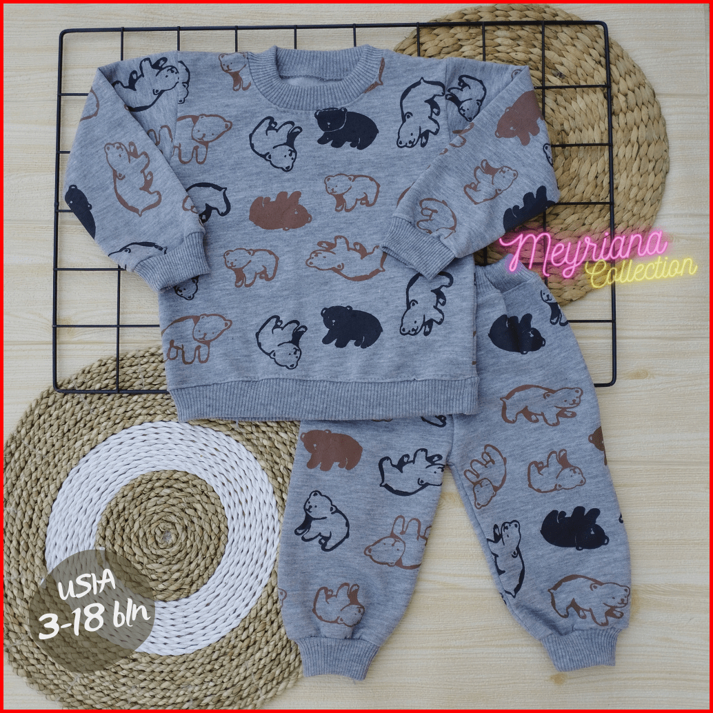 Setelan Joger Bayi Sweater Bayi Baju Celana Jaket Bayi Setelan Casual Modern Motif Beruang Usia 3-18 Bulan Meyriana Coll