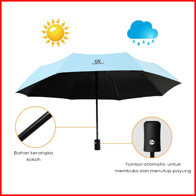 Payung Lipat Anti Uv Premium Otomatis Manual Foldable Umbrella Automatic Korea Manual Buka Tutup Fold Matahari Hujan Cer