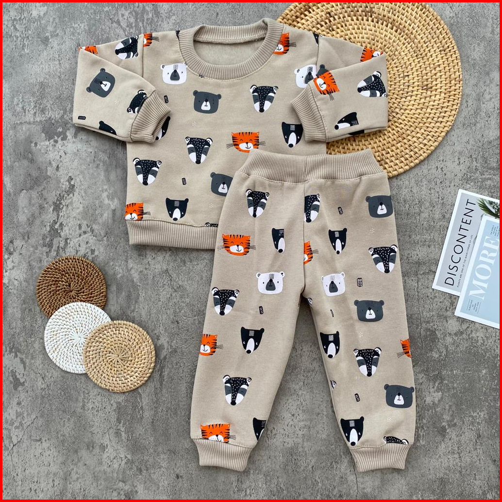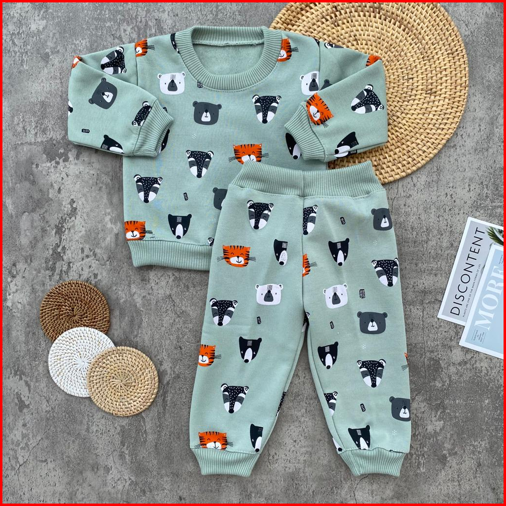 Setelan Baju Bayi Setelan Sweater Celana Joger Motif Safari Bahan Katun Fleece Usia 3-12 Bulan Almeera Baby And Kids