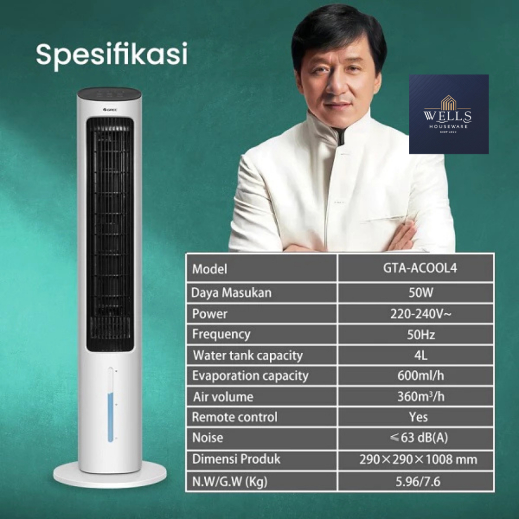 Wells Houseware - GREE Tower Fan Air Cooler with Generator Anion - GTA-ACOOL4 - Humidifier - Tangki 4L