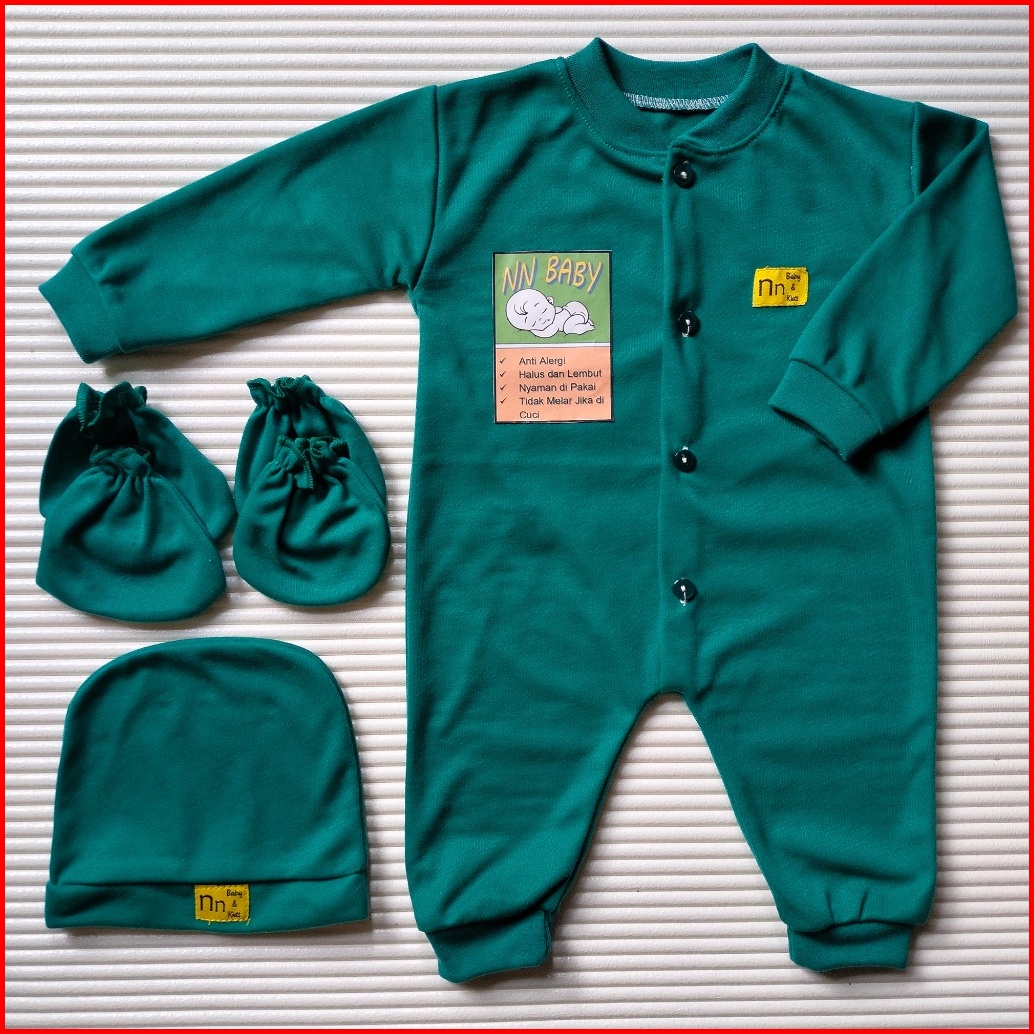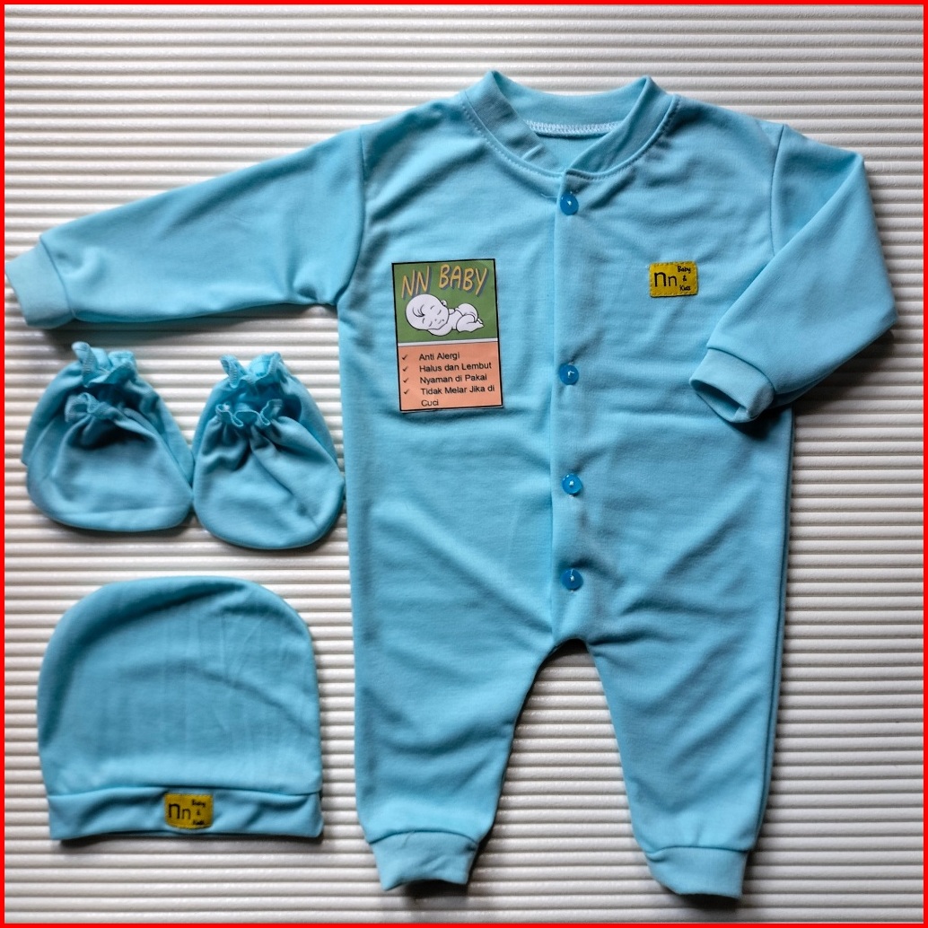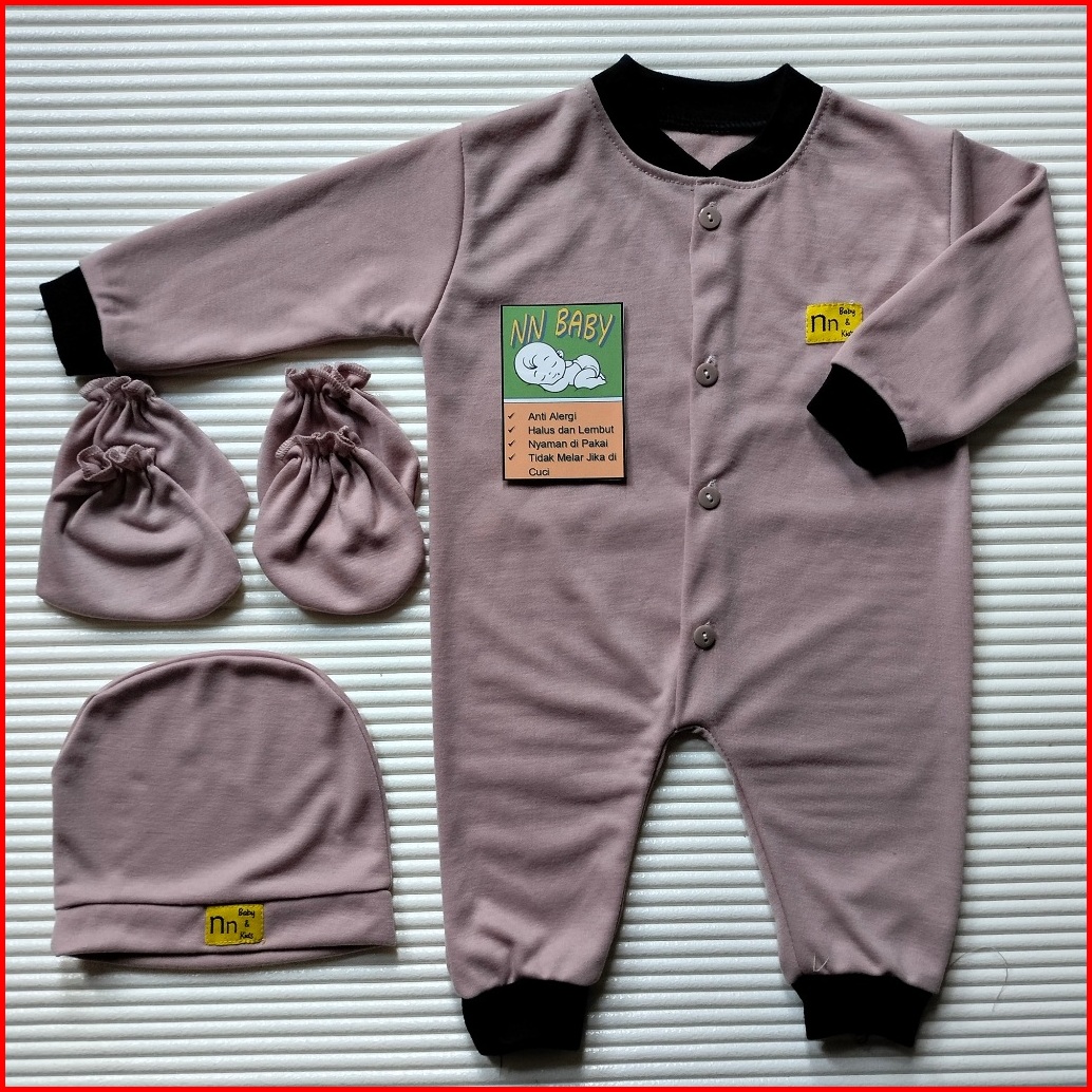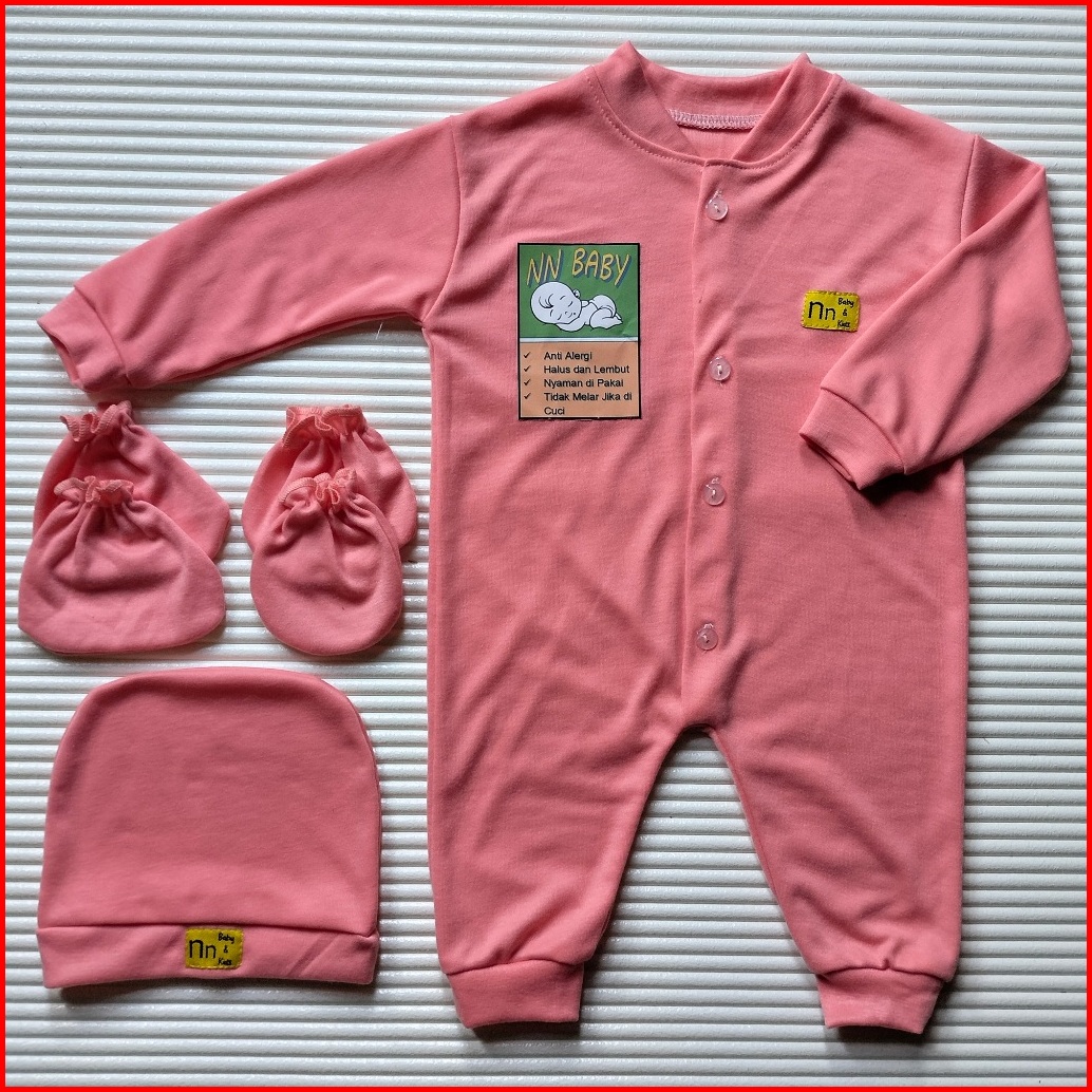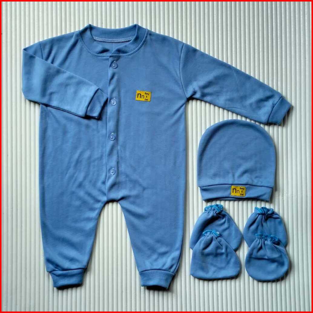 Nn Baby 1 Set Baju Jumpsuit Bayi Baru Lahir Lengan Panjang Kancing Tengah 0-12 Bulan Topi Sartaki