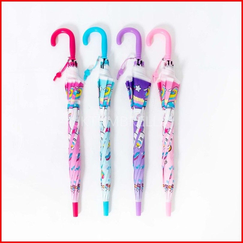 Payung Tongkat Anak Doff Motif Unicorn Kuda Poni Banyak Pilihan Warna Kokoh - K267