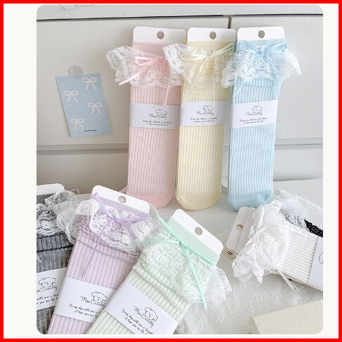Asiababy Kaos Kaki Panjang Anak Perempuan Pita Renda Amber